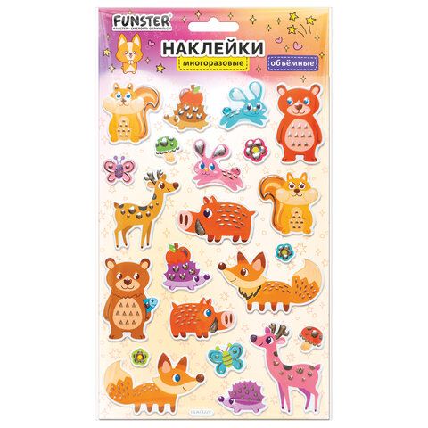Наклейки объемные MAXI 21х14 см, ассорти 12 видов, FUNSTER (ФАНСТЕР), 666678