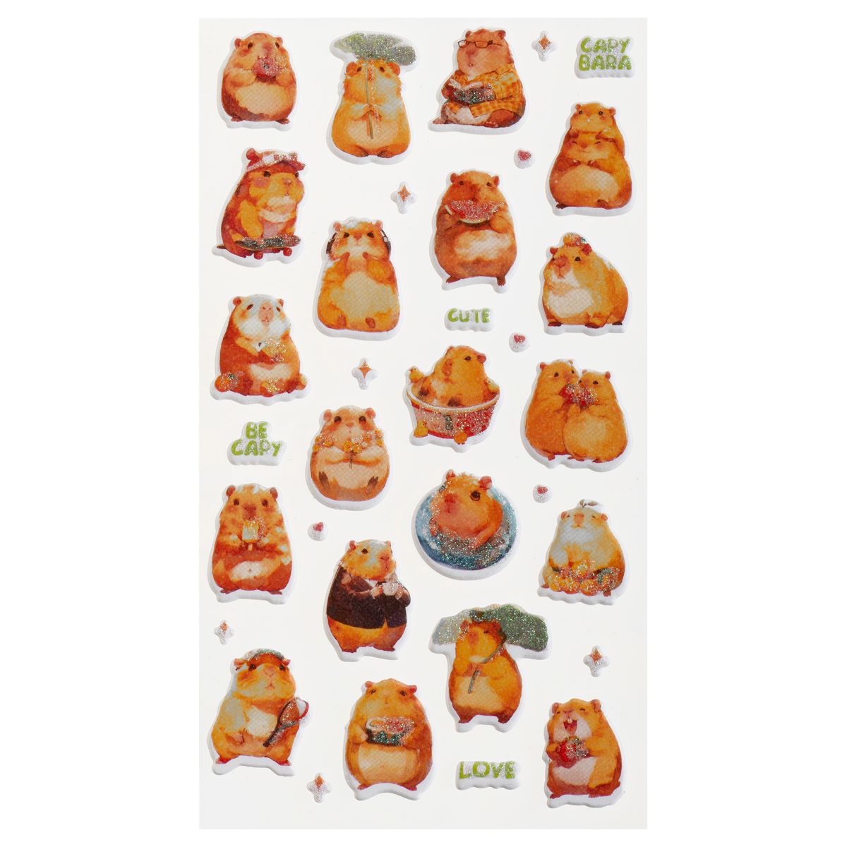 Милые капибары сделают творческий процесс декорирования увлекательным и подарят отличное настроение. Наклейки легко отделяются от основы и надёжно держатся на поверхности. Их можно использовать повторно. Набор упакован в пакет с европодвесом.