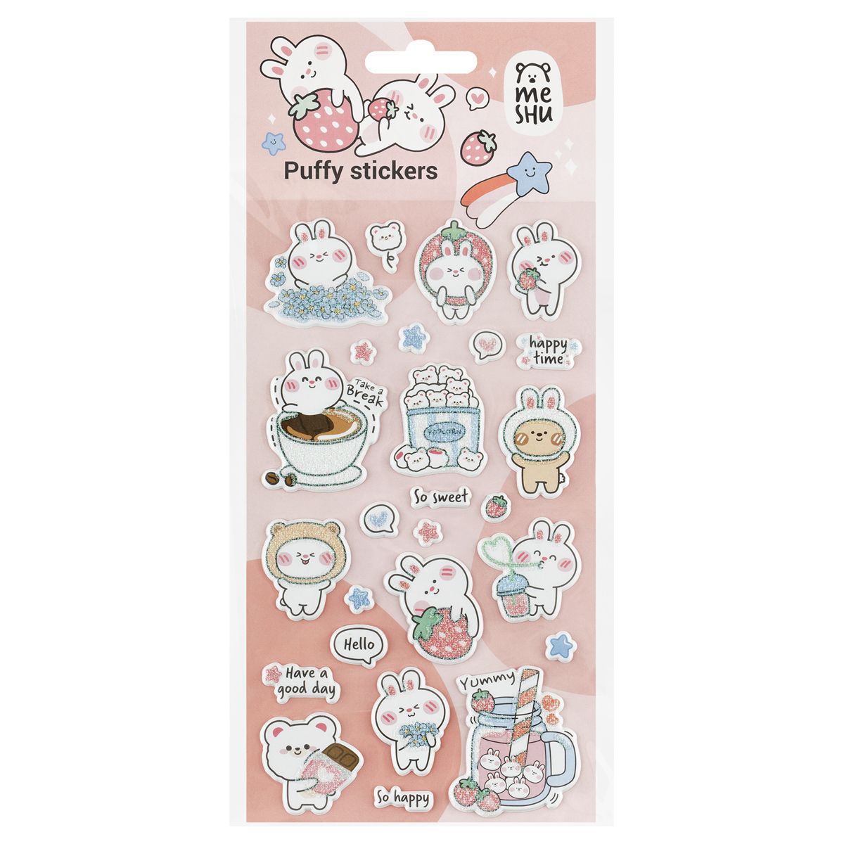 Наклейки объемные MESHU "Bubble bunny", 10*23см, с блестками, пакет европодвес