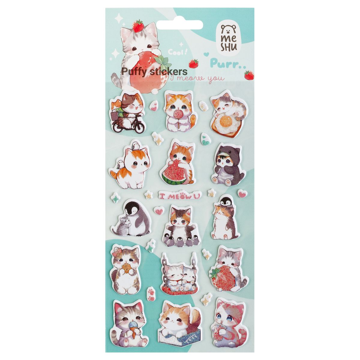 Наклейки объемные MESHU "I meow you", 10*23см, с блестками, инд. уп., европодвес