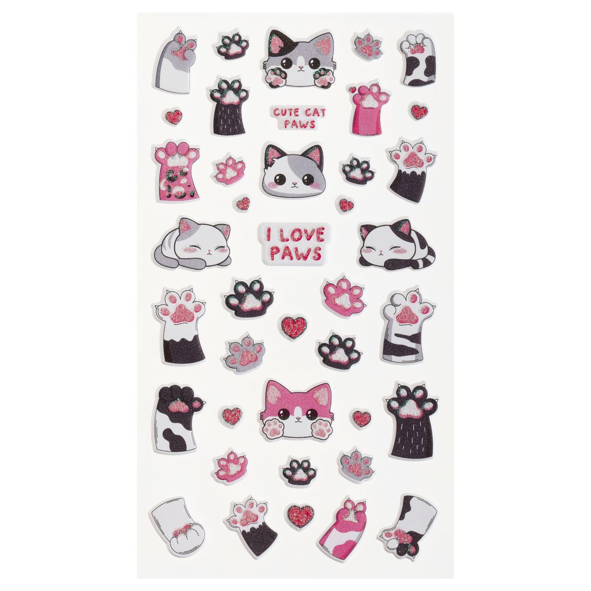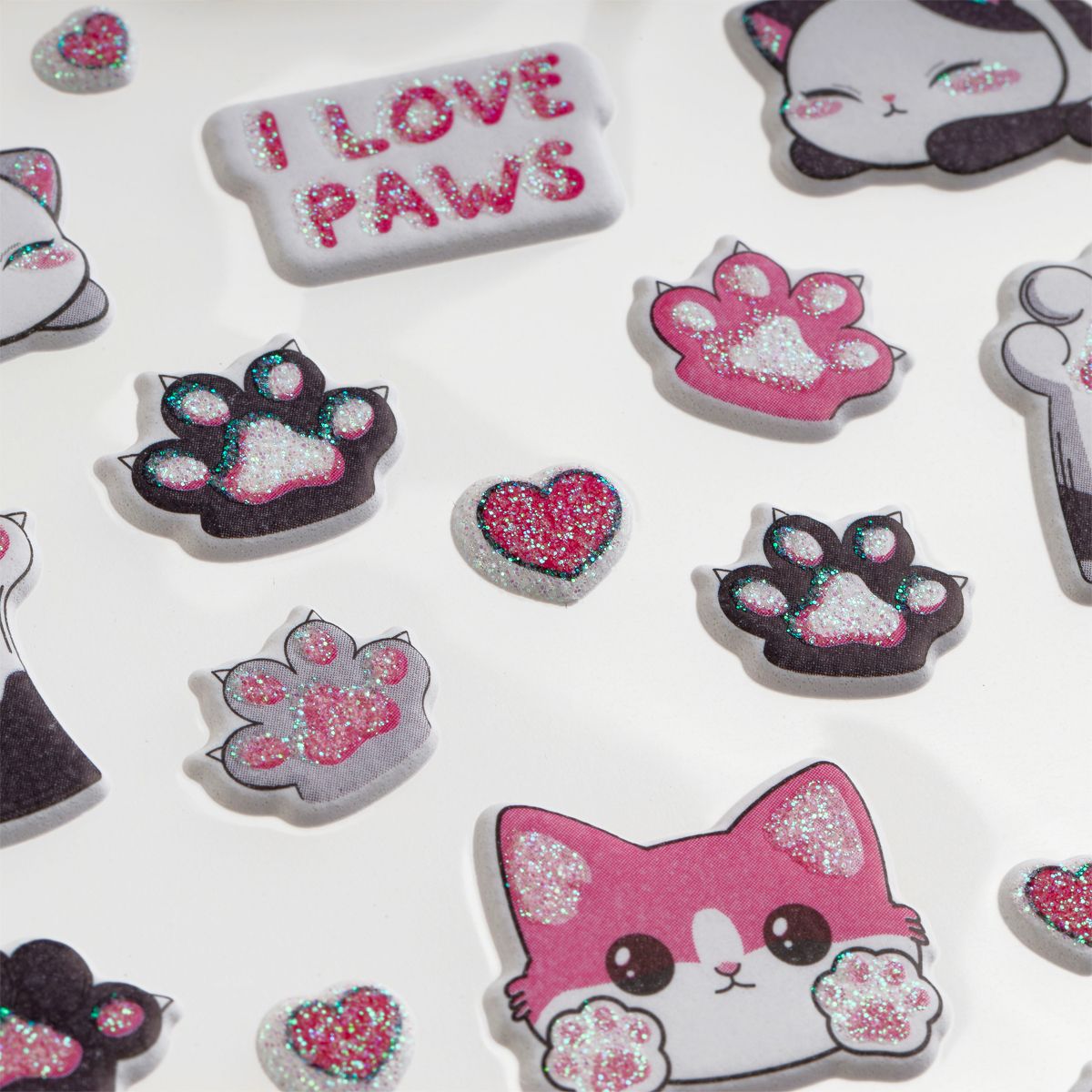 Наклейки объемные MESHU "Love Paws", 10*23см, с блестками, инд. уп., европодвес