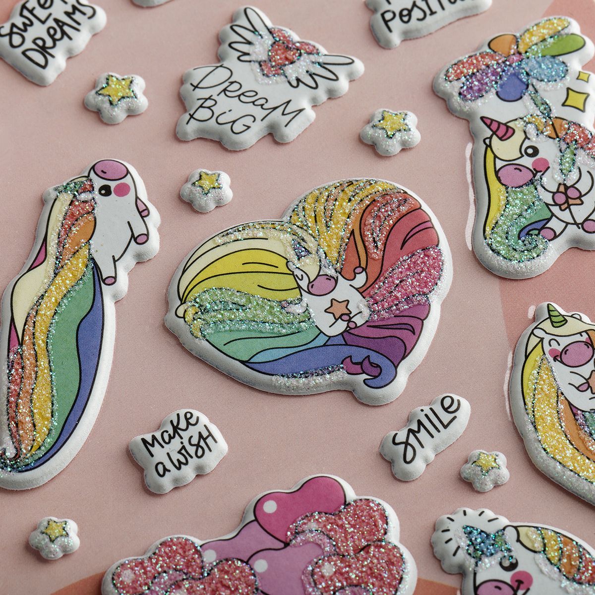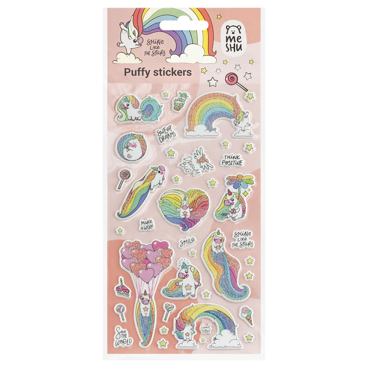 Наклейки объемные MESHU "Rainbow unicorn", 10*23см, с блестками, пакет европодвес