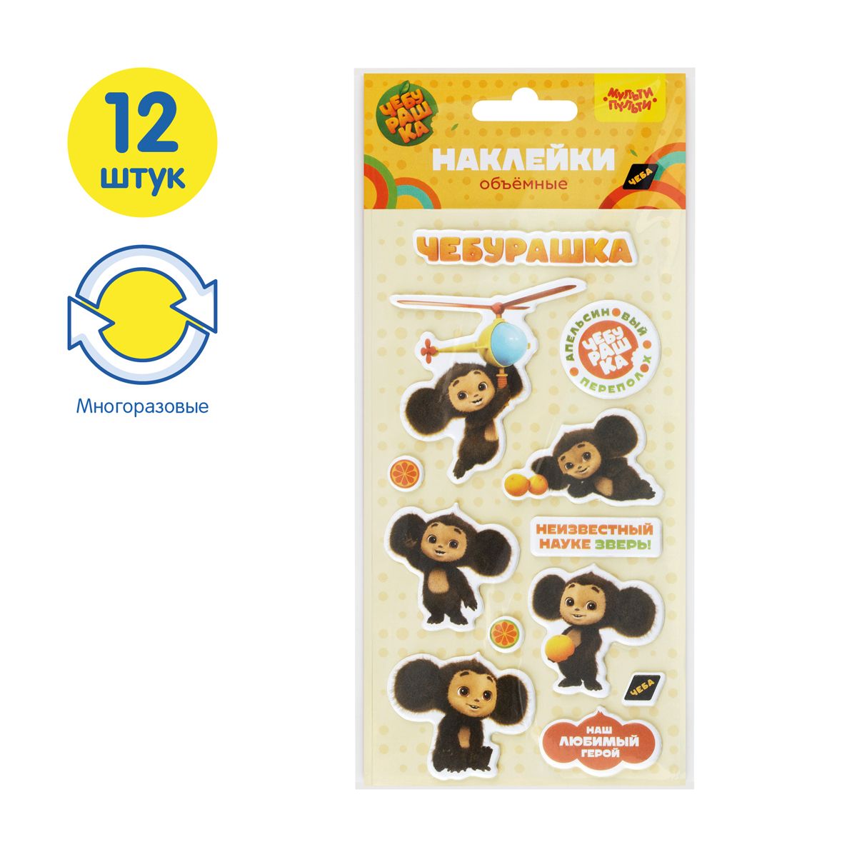 Наклейки объемные Мульти-Пульти "Чебурашка", 12 наклеек