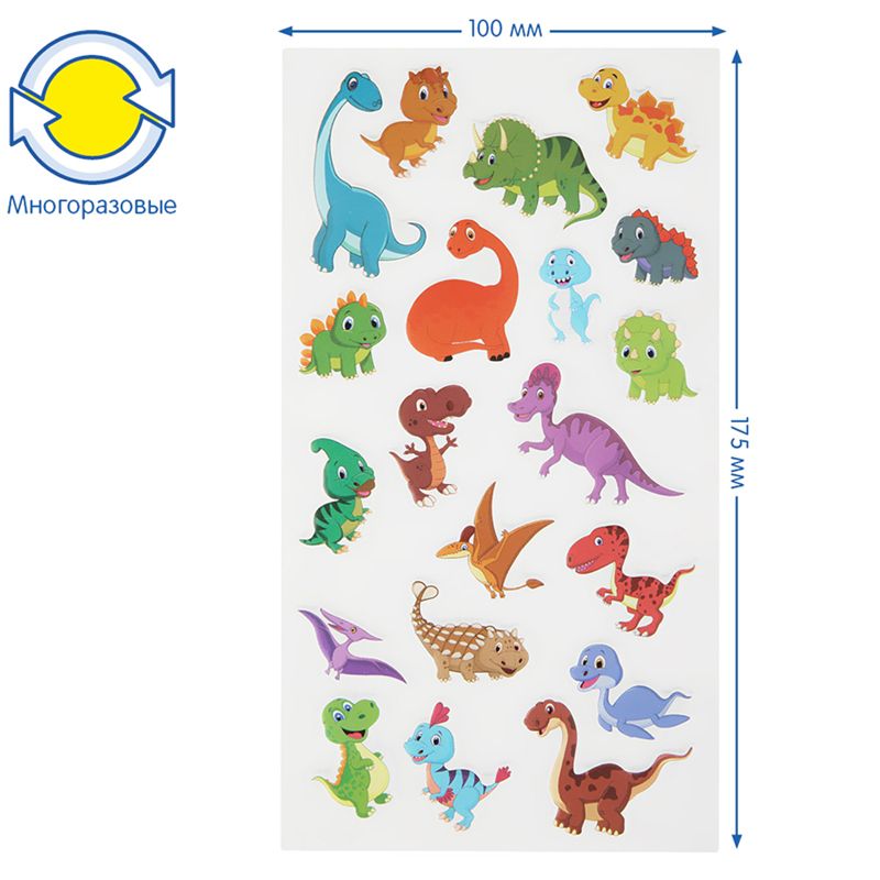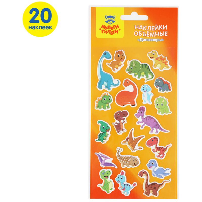 Наклейки объемные Мульти-Пульти "Динозавры", 10*22см, 20 наклеек, инд. уп., европодвес