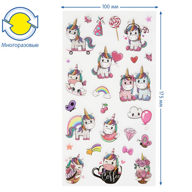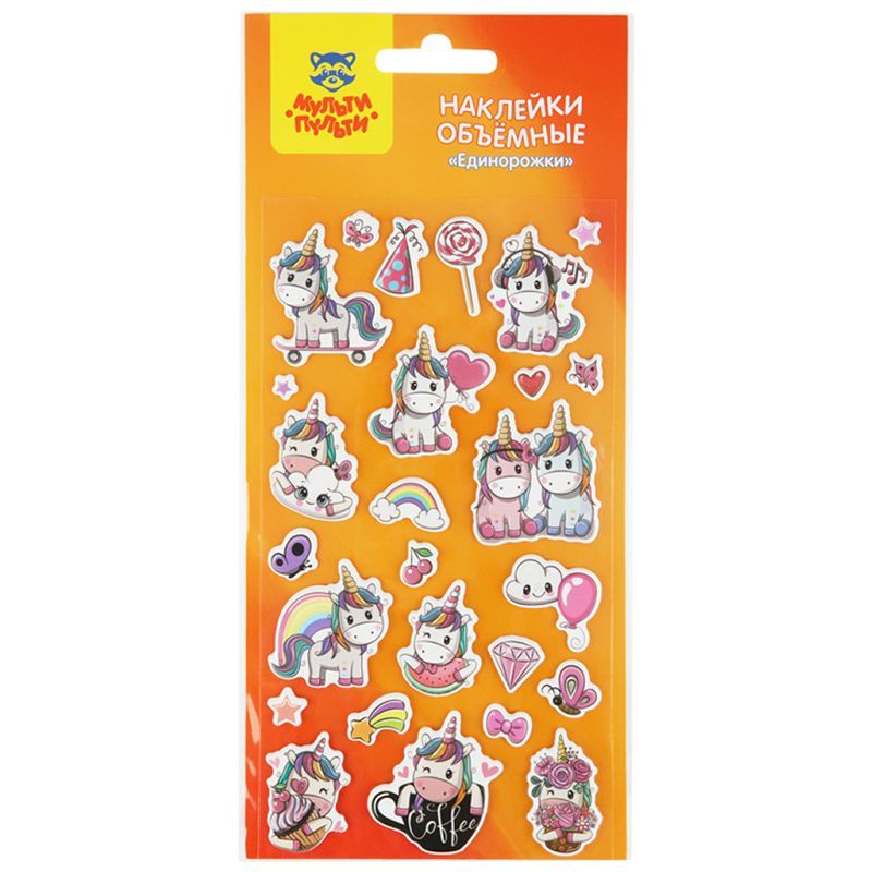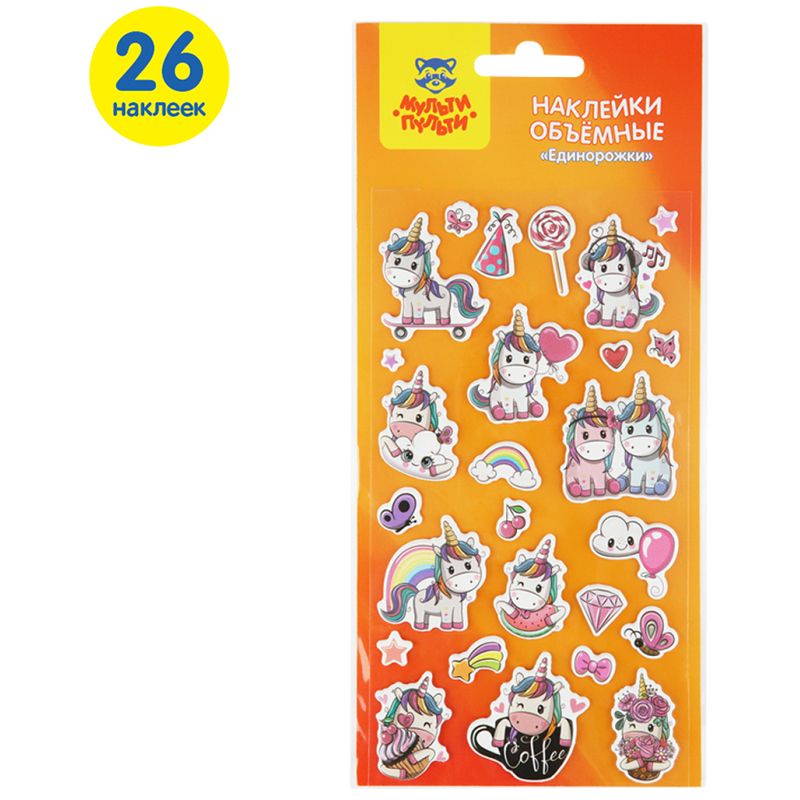 Наклейки объемные Мульти-Пульти "Единорожки", 10*22см, 26 наклеек, инд. уп., европодвес