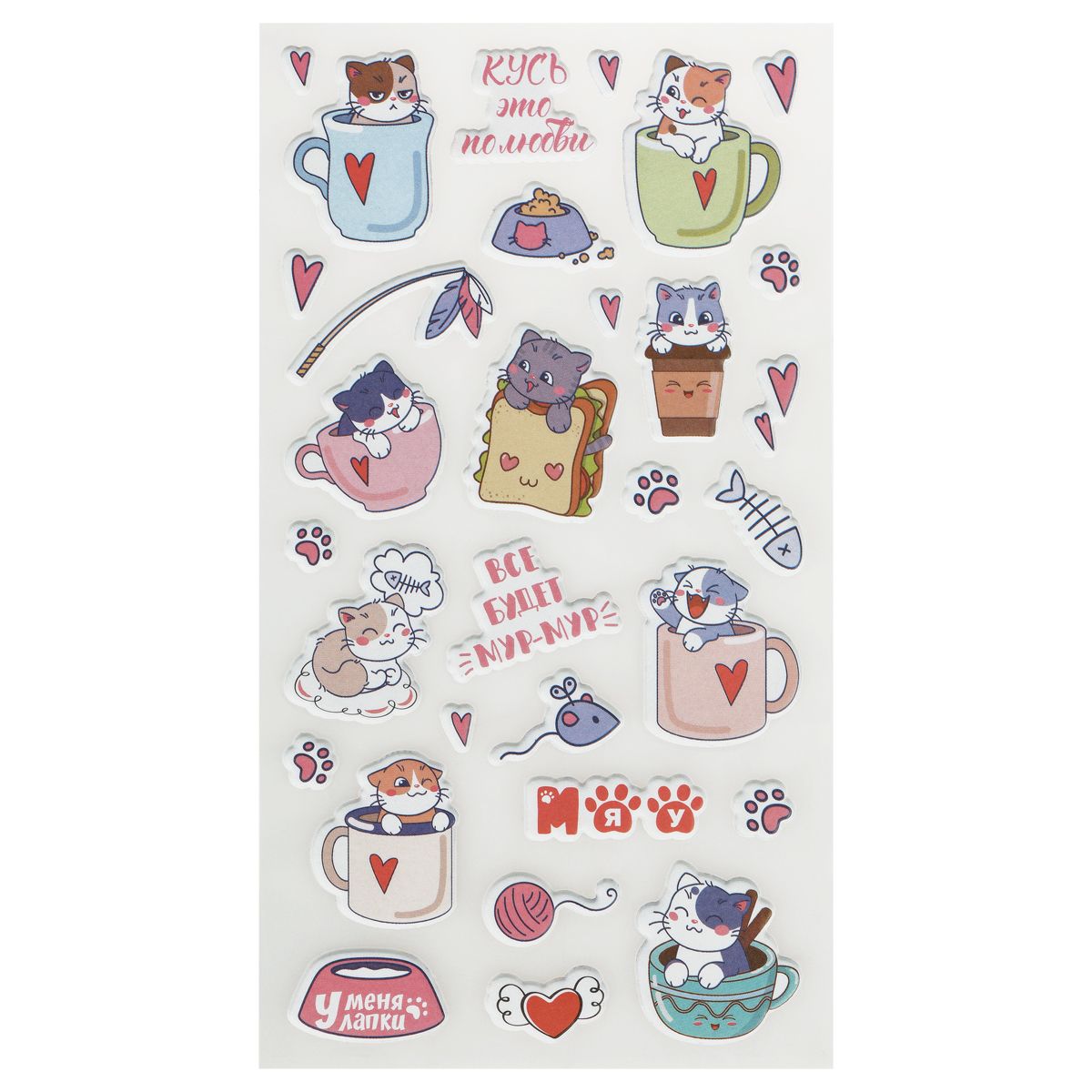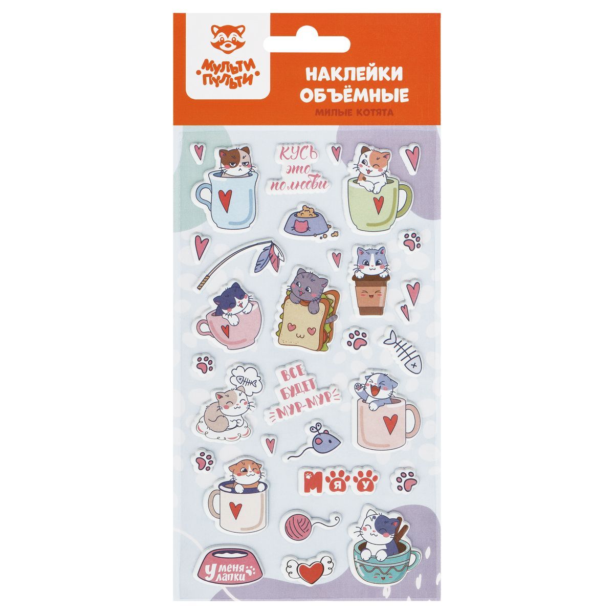 Наклейки объемные Мульти-Пульти "Милые котята", 22*10см, пакет европодвес
