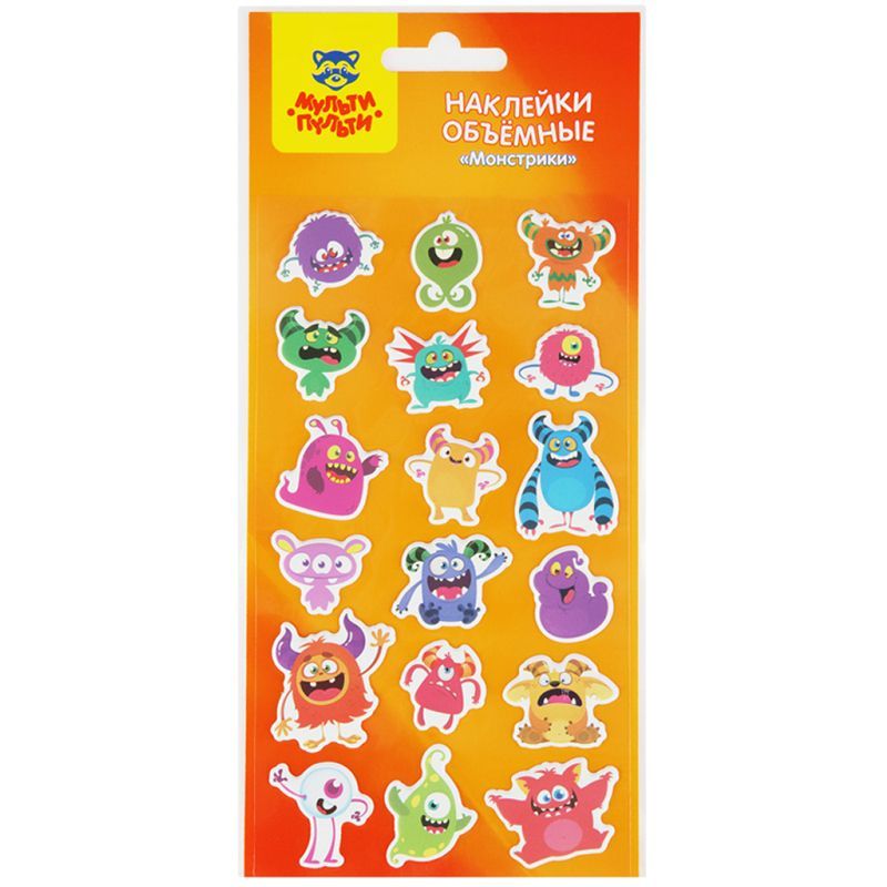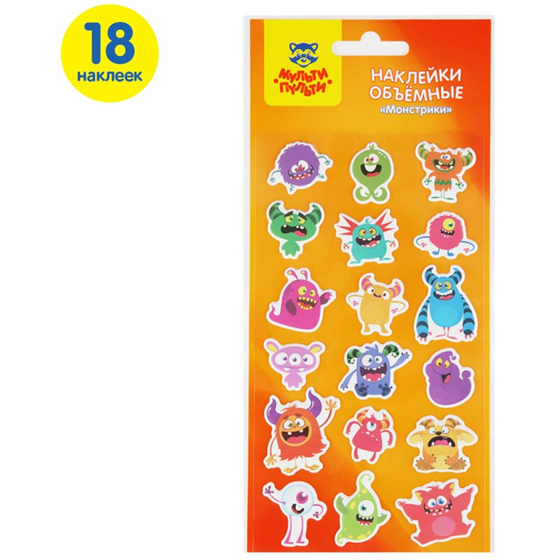 Наклейки объемные Мульти-Пульти "Монстрики", 10*22см, 18 наклеек, инд. уп., европодвес