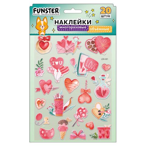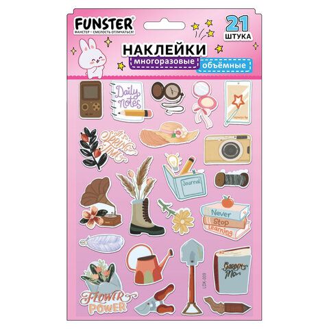 Наклейки объемные "Вдохновение", 19х15 см, ассорти 12 видов, FUNSTER (ФАНСТЕР), 666088