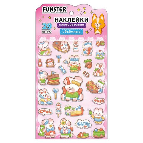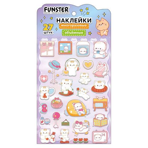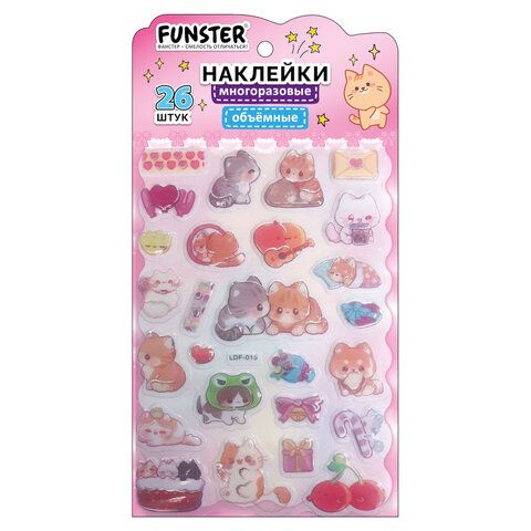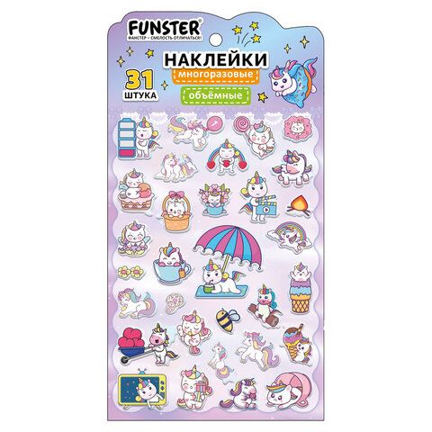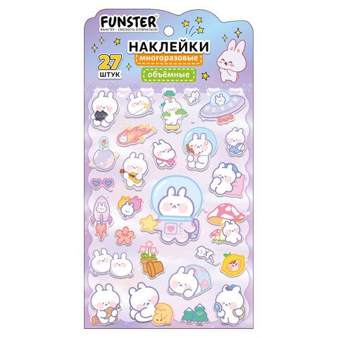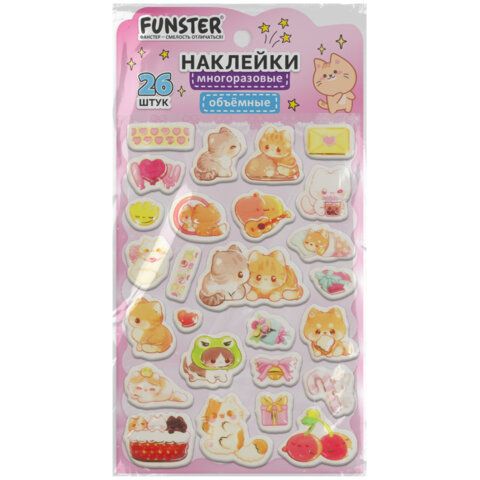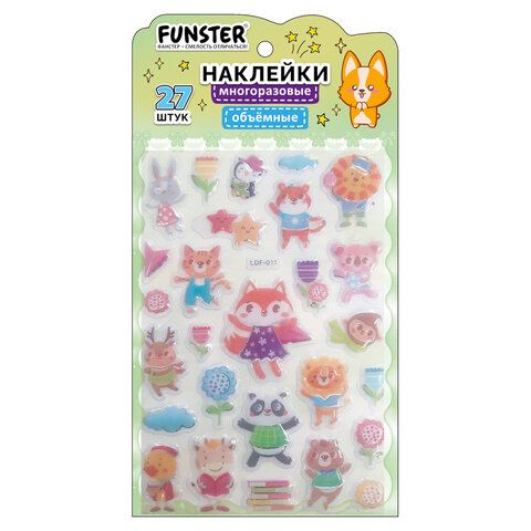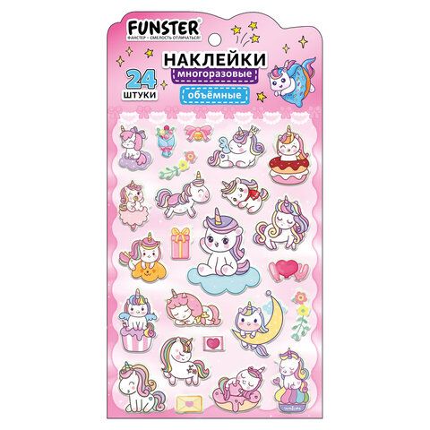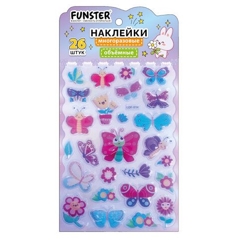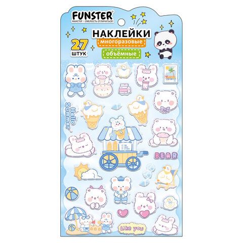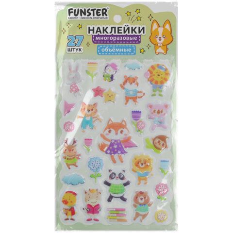 Наклейки объемные "Яркий микс", 19х13,5 см, ассорти 12 видов, FUNSTER (ФАНСТЕР), 666087