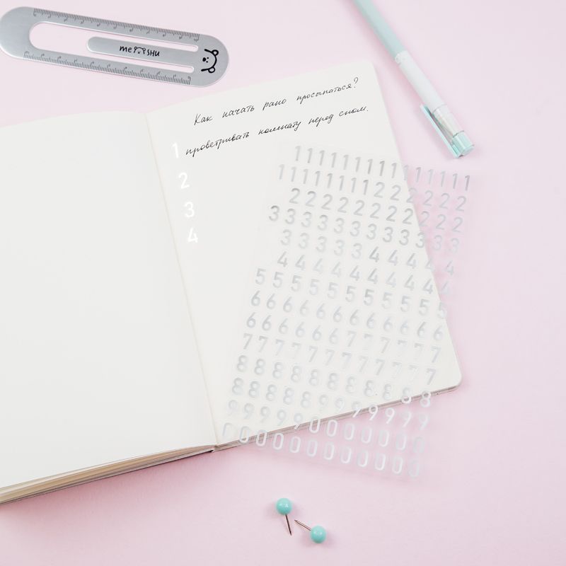 Наклейки ПВХ MESHU "Silver numbers", 10*21см, фольга, 170 наклеек, инд. уп., европодвес