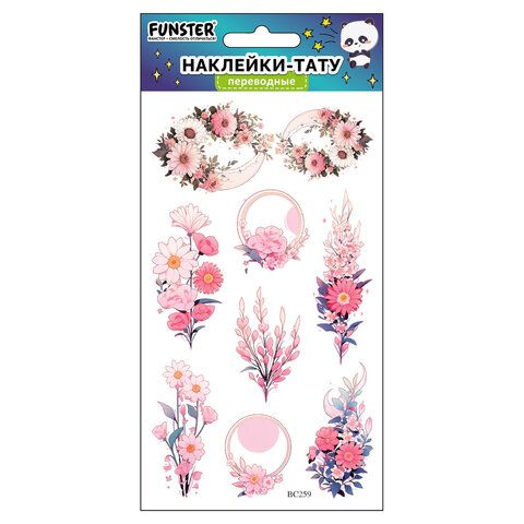 Наклейки-тату переводные "Цветные", 20,5х10 см, ассорти 12 видов, FUNSTER (ФАНСТЕР), 666105
