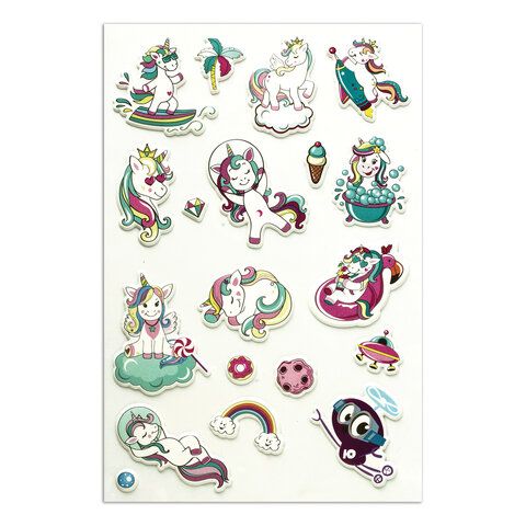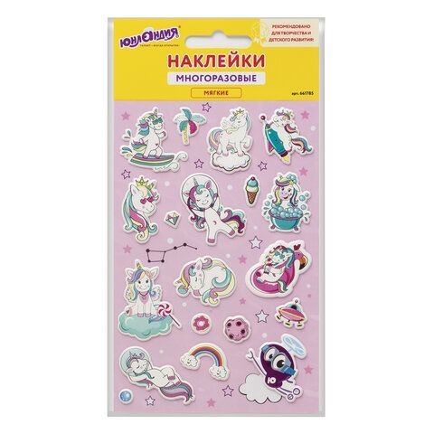 Наклейки зефирные "Единороги", многоразовые, 10х15 см, ЮНЛАНДИЯ, 661785