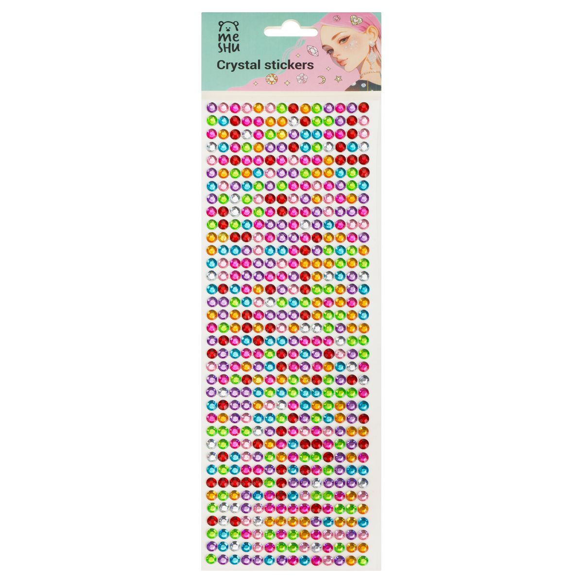 Стразы самоклеящиеся для творчества MESHU "Rainbow" 504 наклейки, инд. уп., европодвес