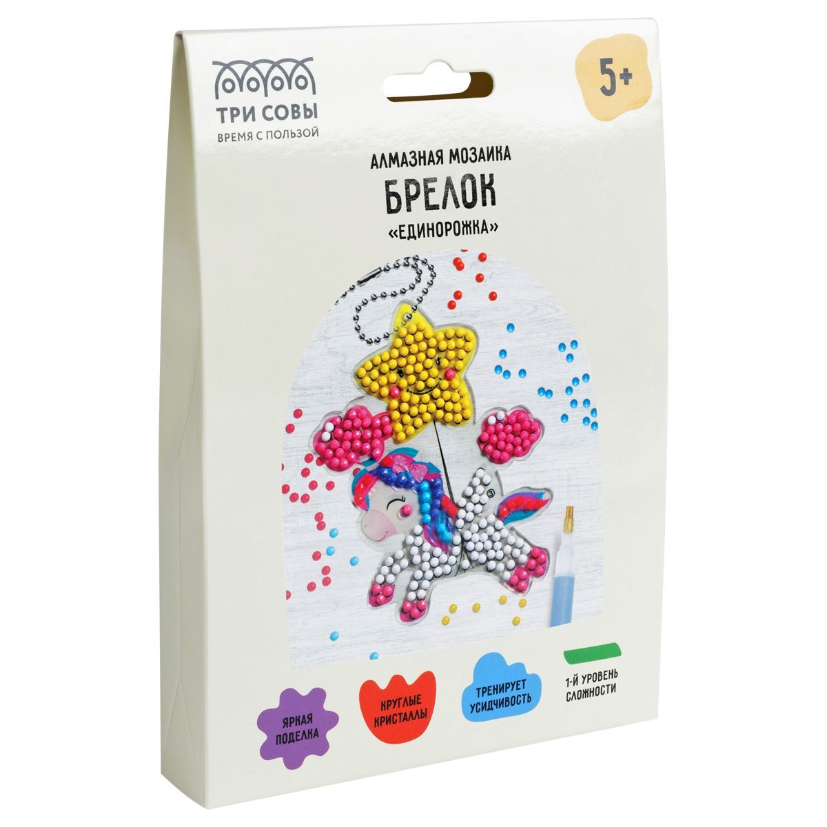 Алмазная мозаика, брелок ТРИ СОВЫ "Единорожка", картонный конверт