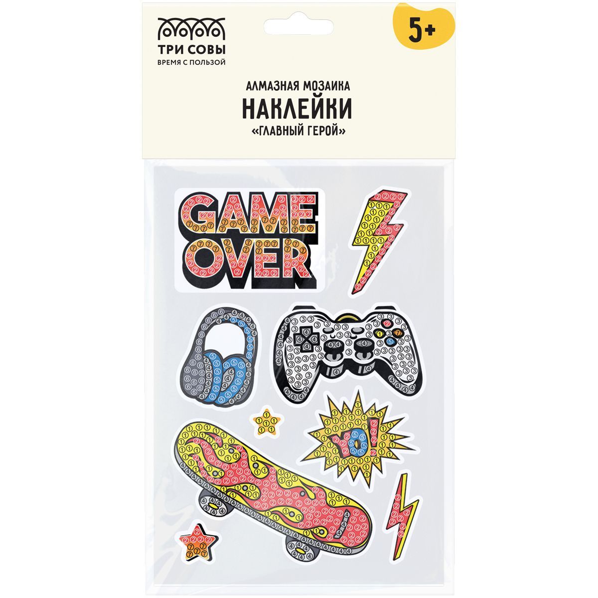 Алмазная мозаика, наклейки ТРИ СОВЫ "Главный герой", пакет с европодвесом