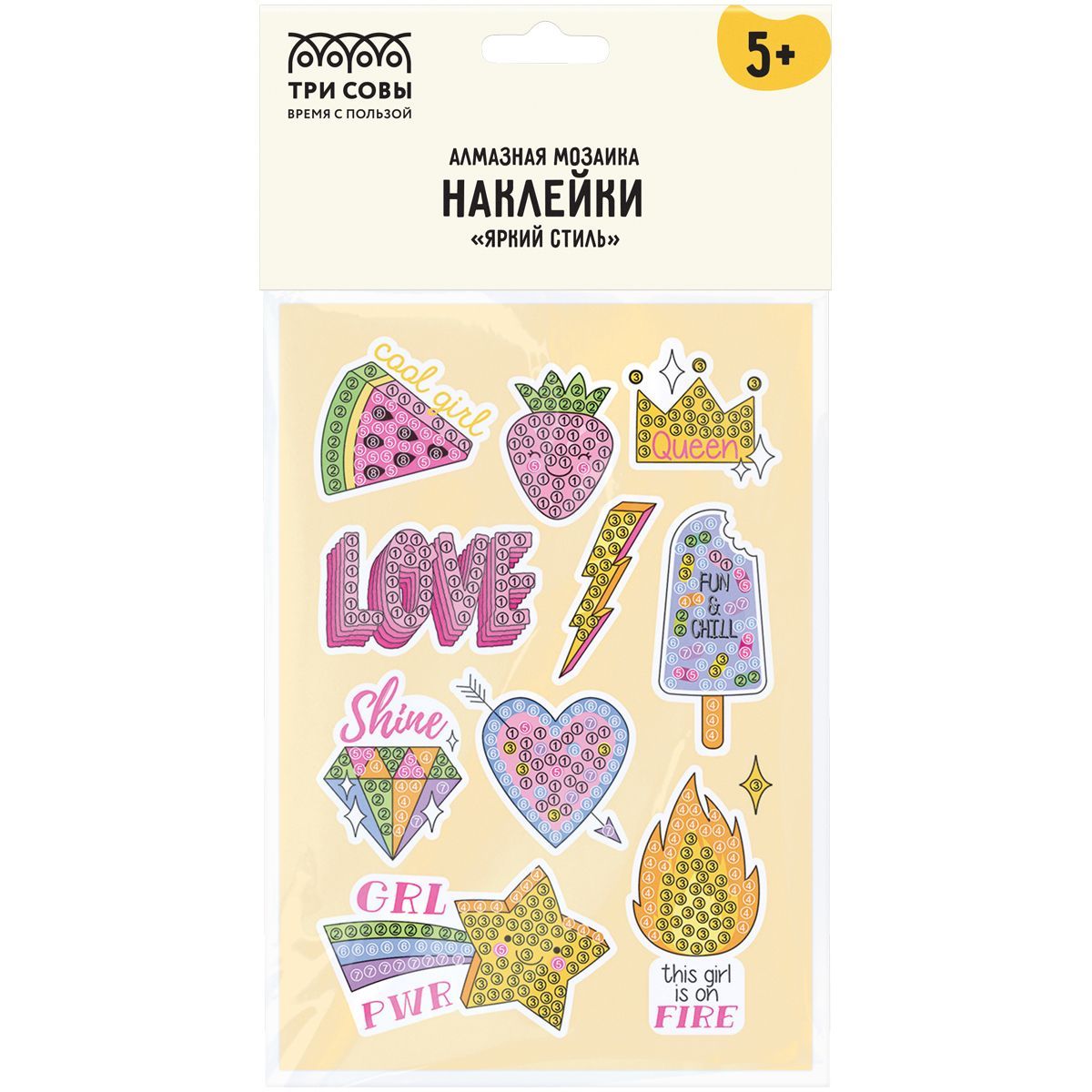 Алмазная мозаика, наклейки ТРИ СОВЫ "Яркий стиль", пакет с европодвесом