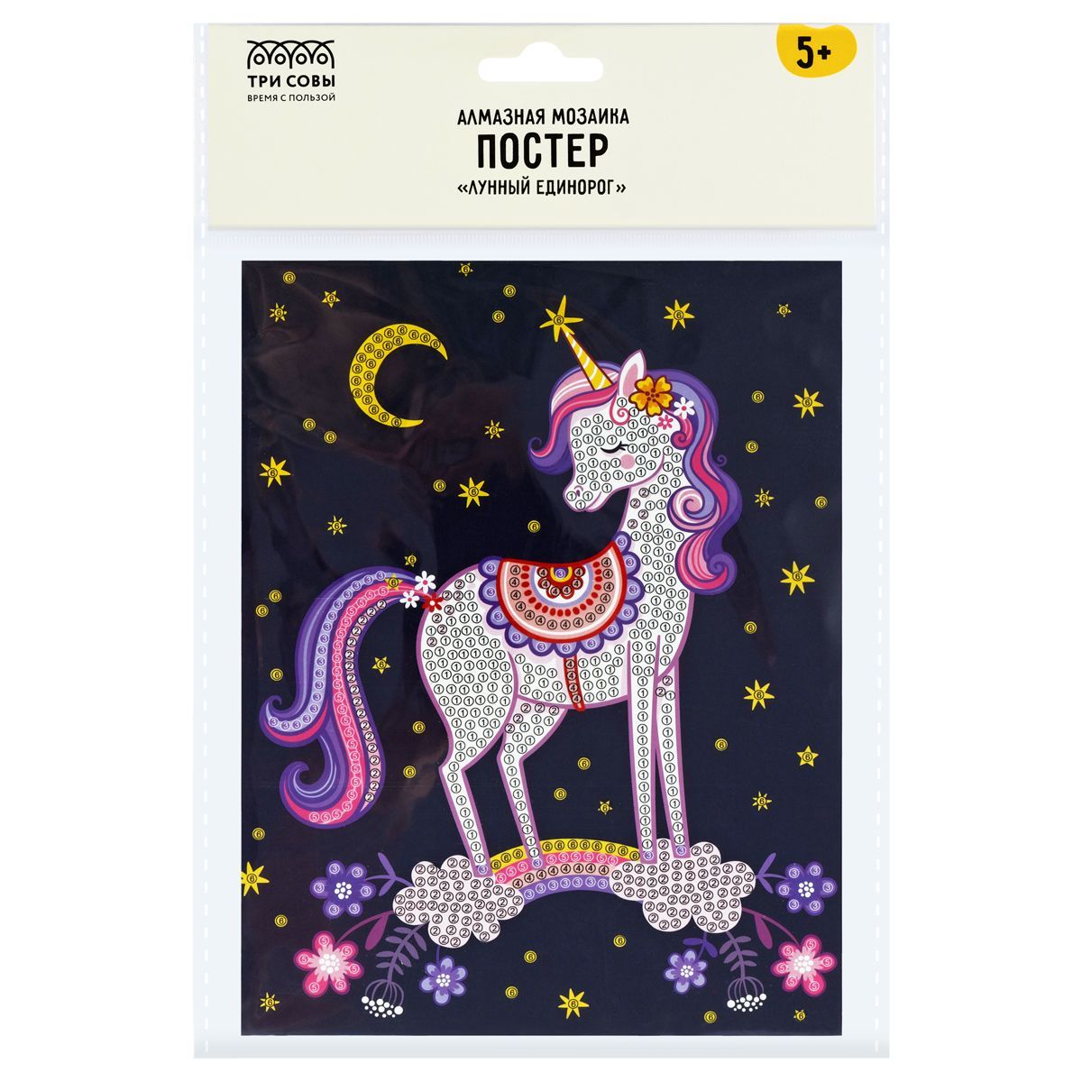 Алмазная мозаика, постер ТРИ СОВЫ "Лунный единорог", пакет с европодвесом
