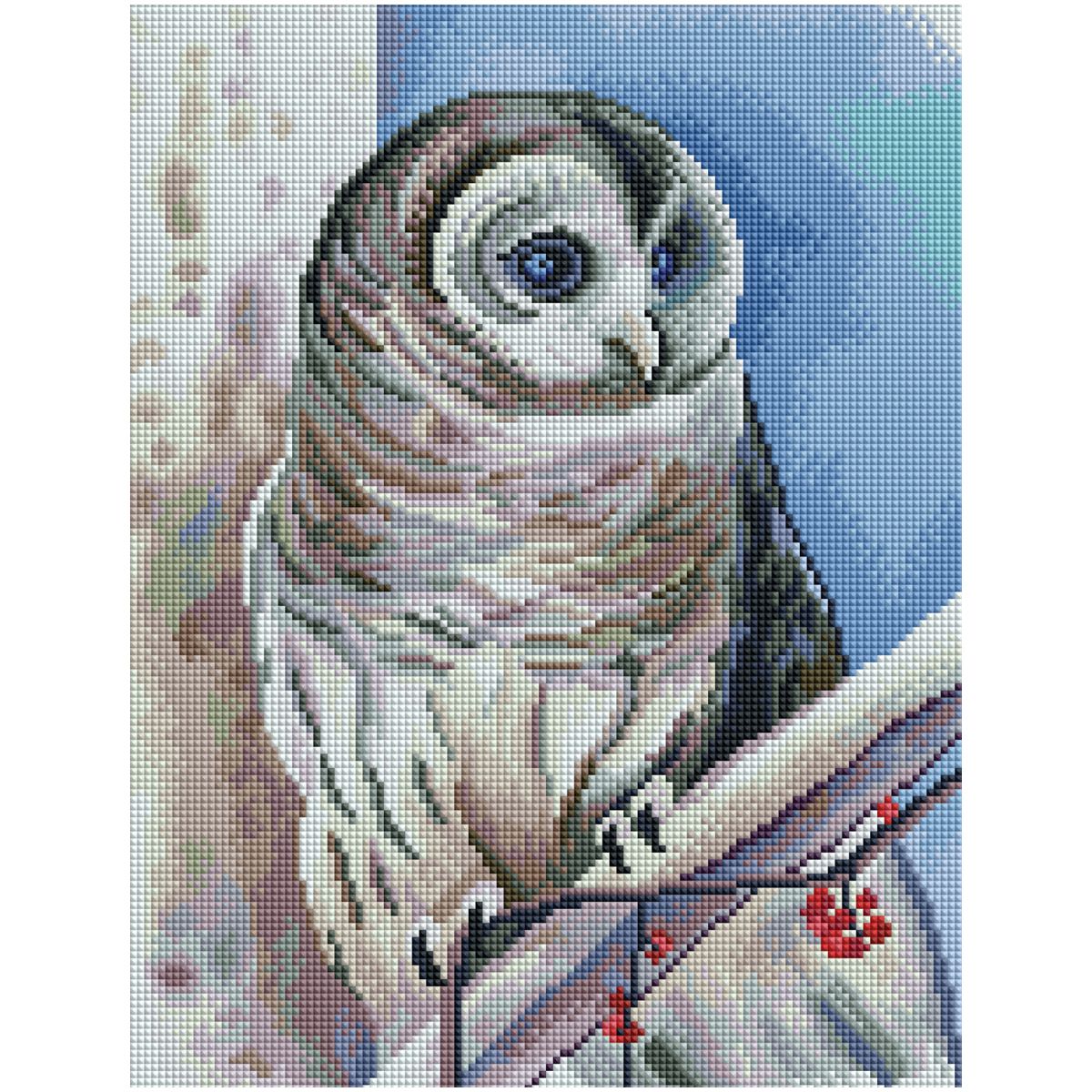Алмазная мозаика ТРИ СОВЫ "Белая сова", 30*40см, холст на деревянном подрамнике, картонная коробка с пластиковой ручкой