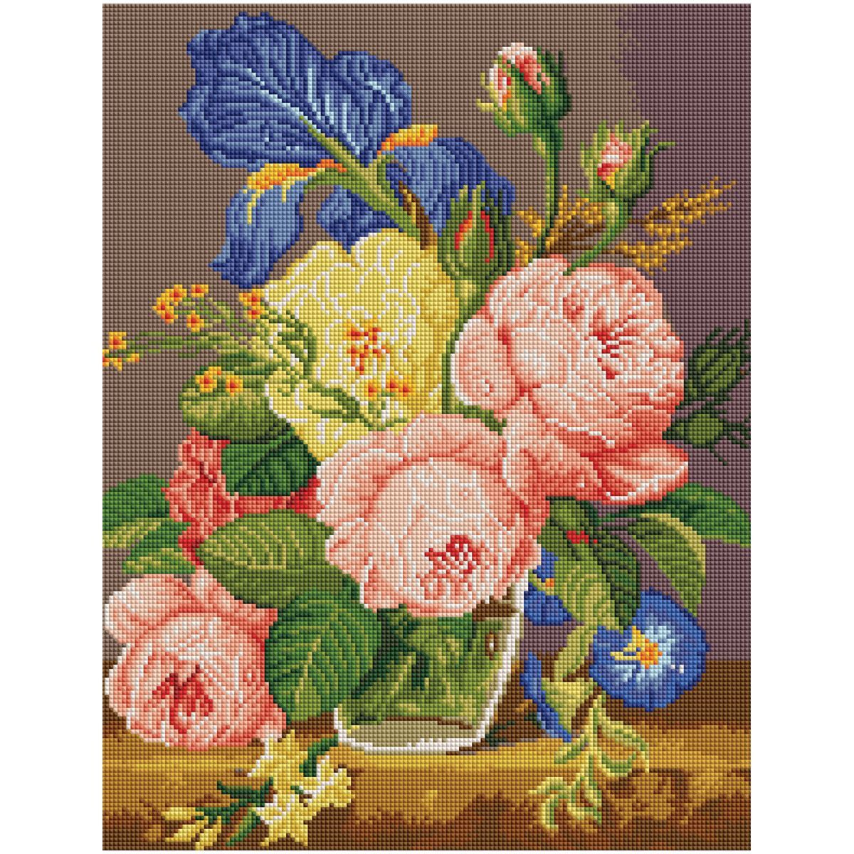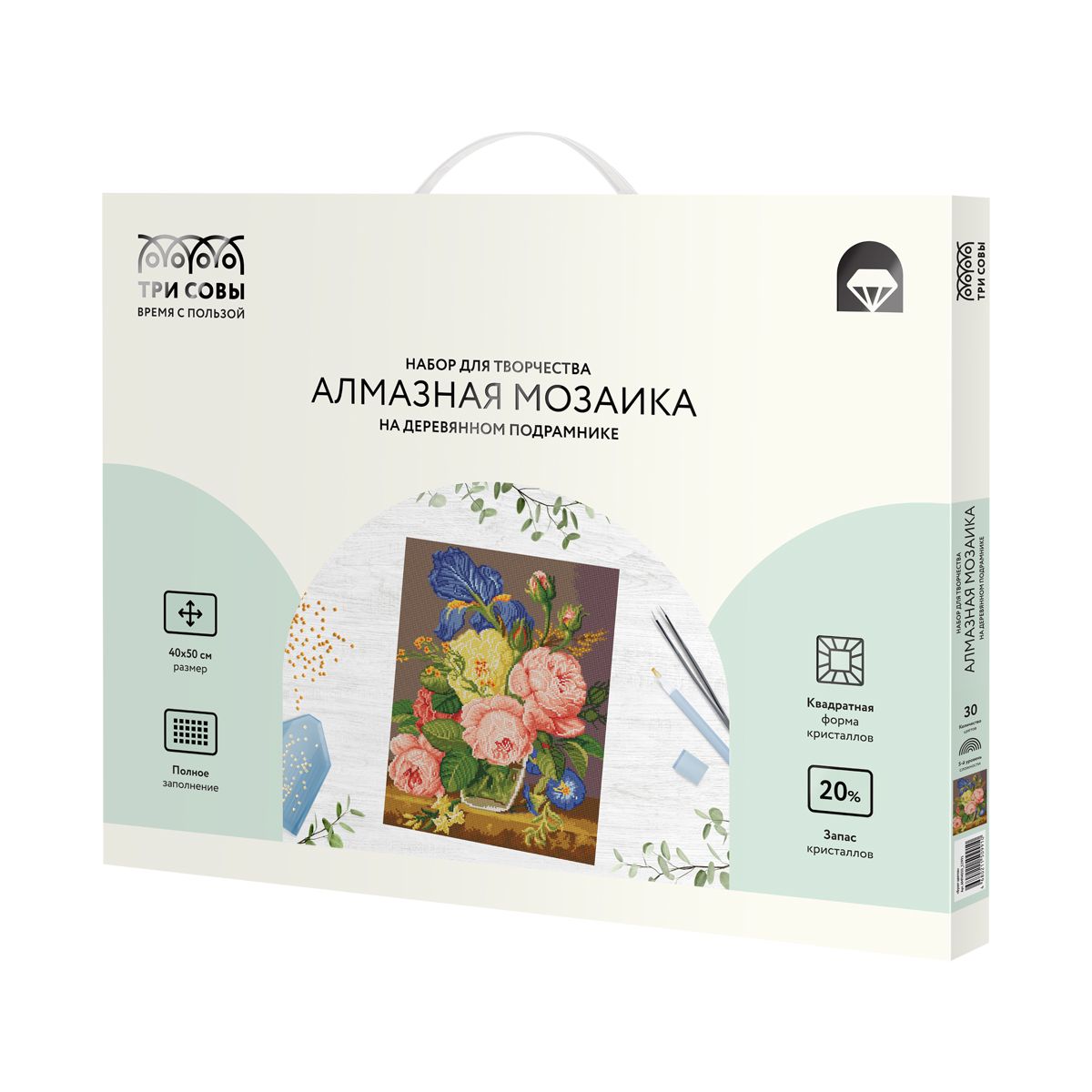 Алмазная мозаика ТРИ СОВЫ "Букет цветов", 40*50см, холст на деревянном подрамнике, картонная коробка с пластиковой ручкой