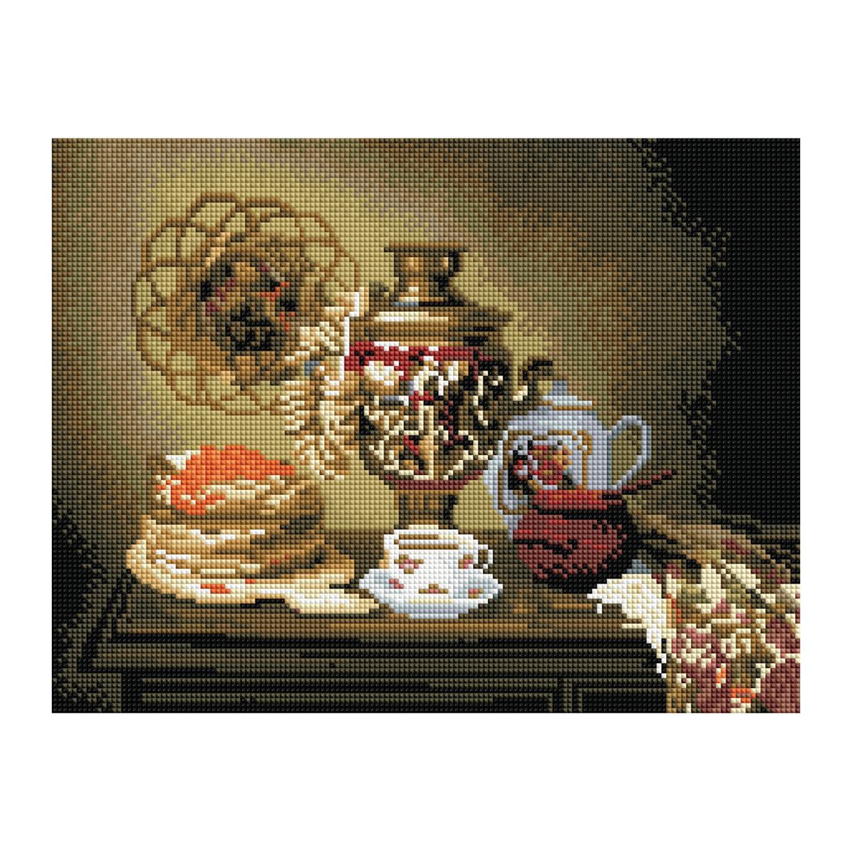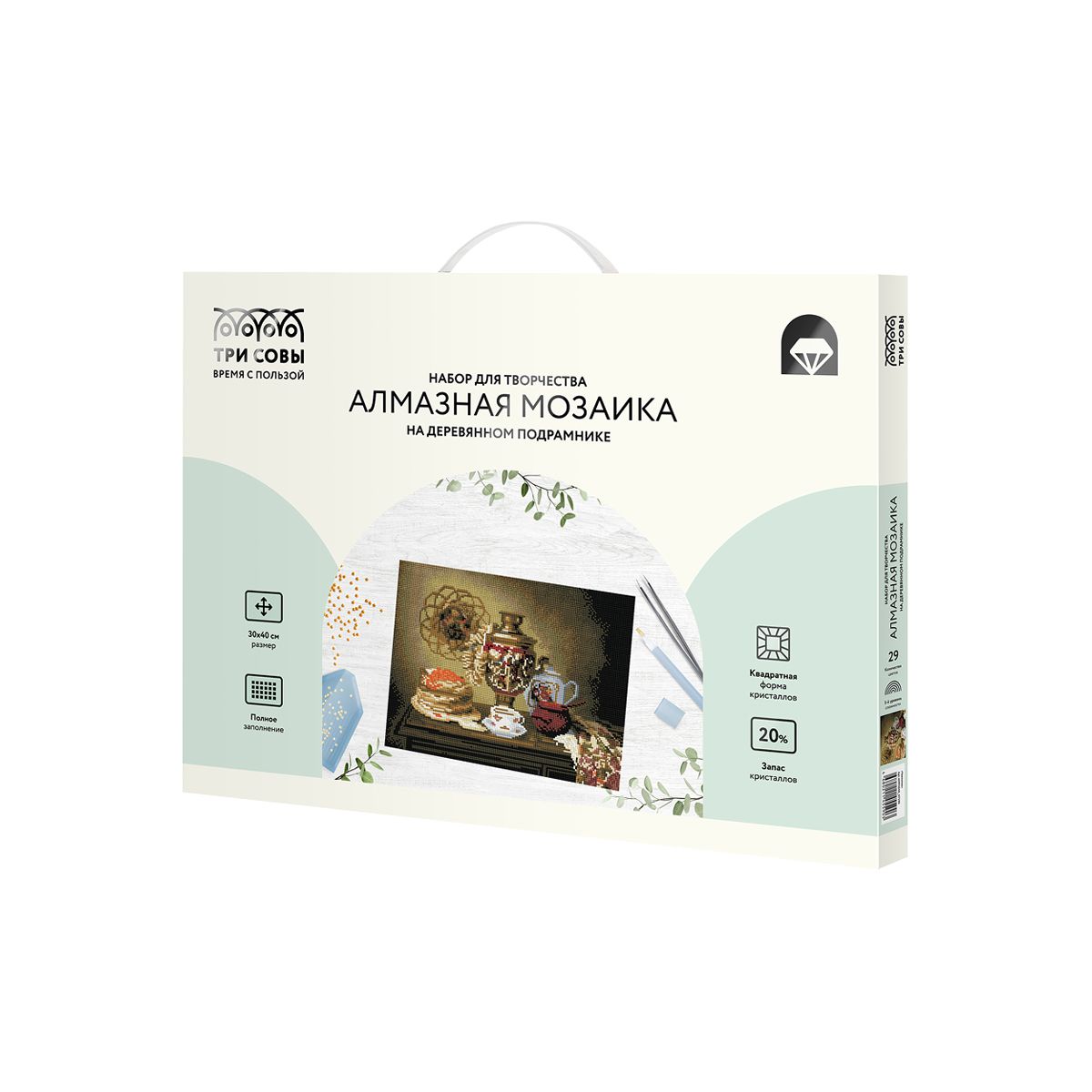 Алмазная мозаика ТРИ СОВЫ "Чаепитие", 30*40см, холст на деревянном подрамнике, картонная коробка с пластиковой ручкой