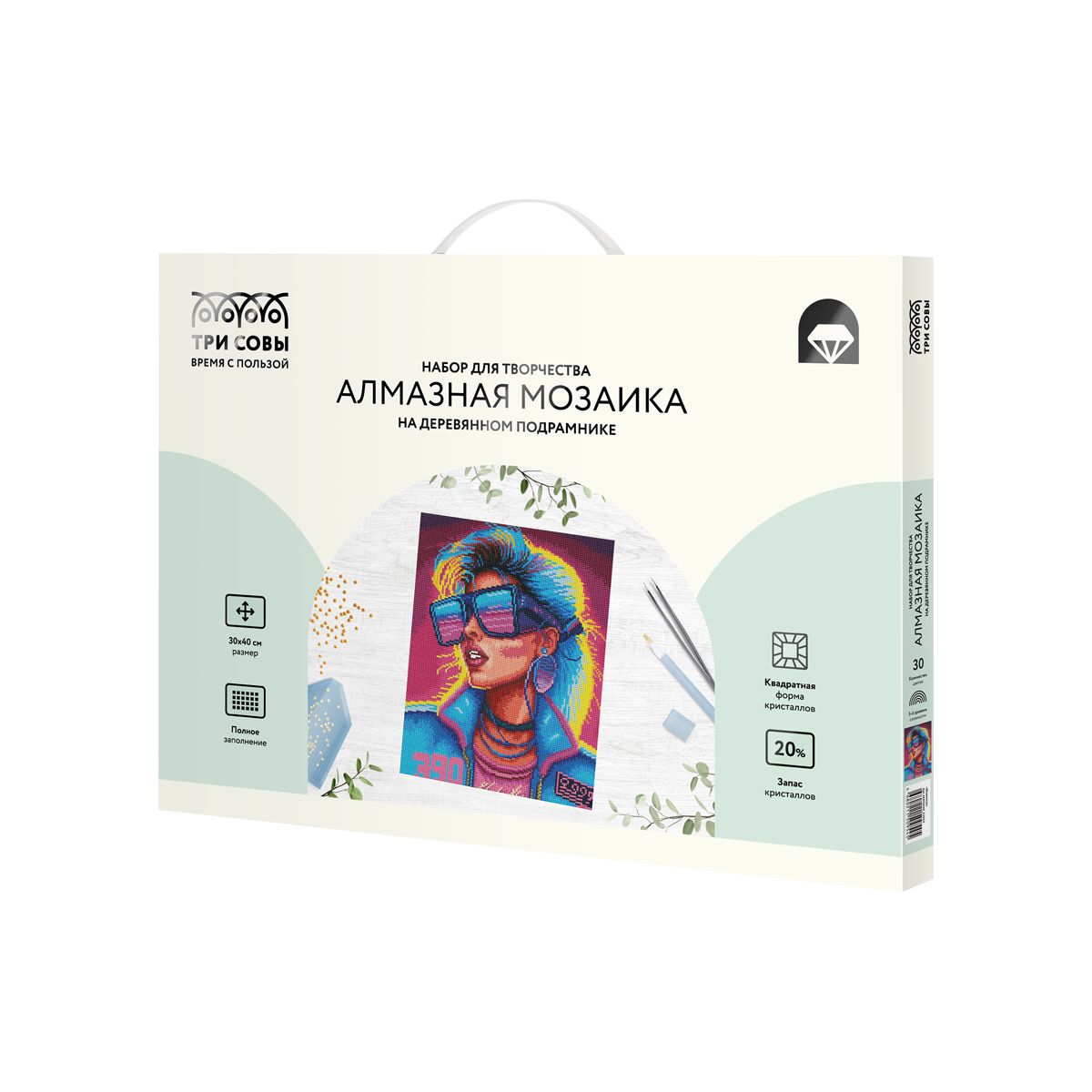 Алмазная мозаика ТРИ СОВЫ "Диджитал", 30*40см, холст на деревянном подрамнике, картонная коробка с пластиковой ручкой