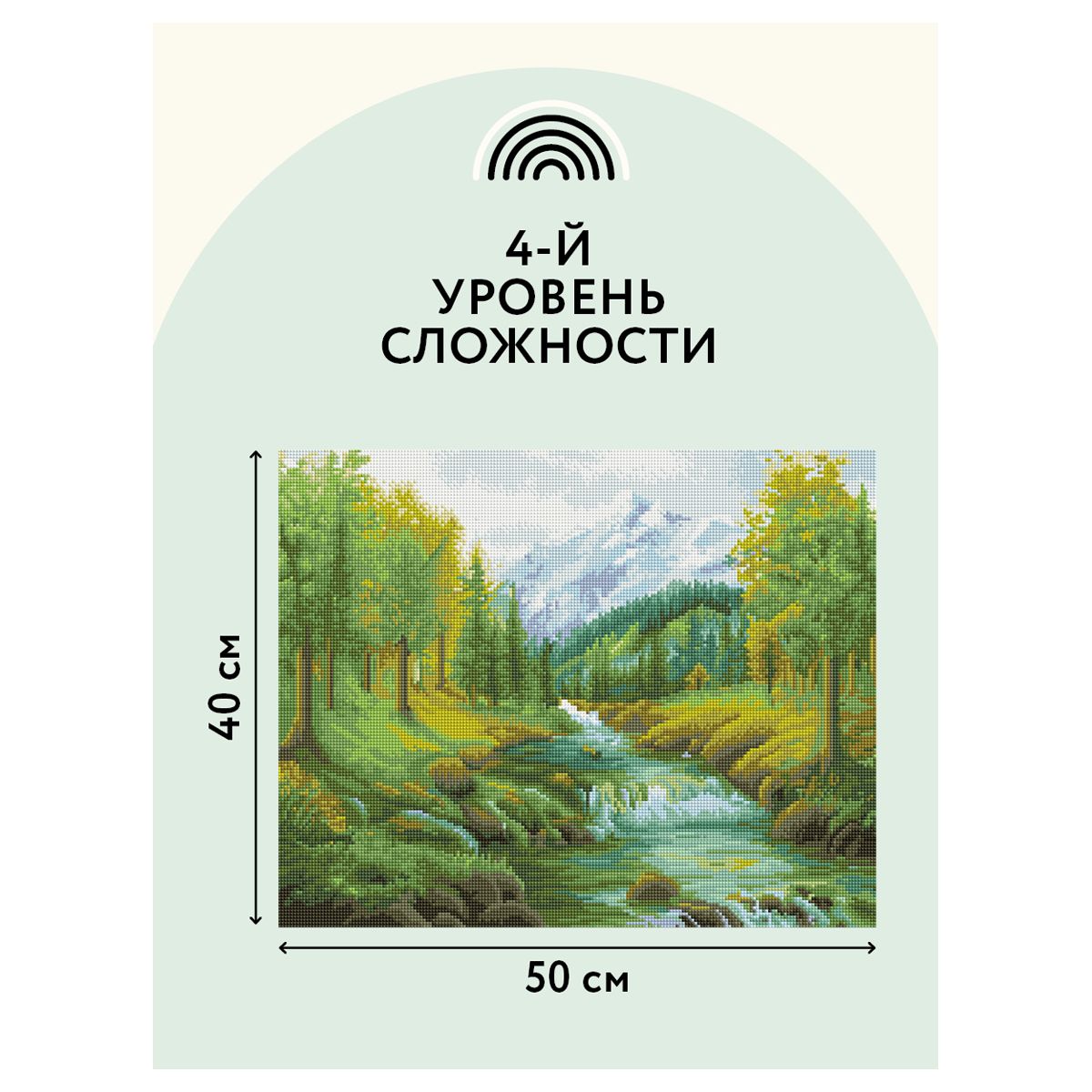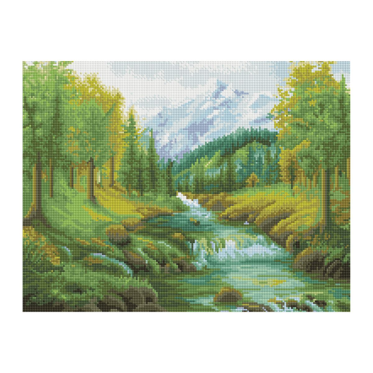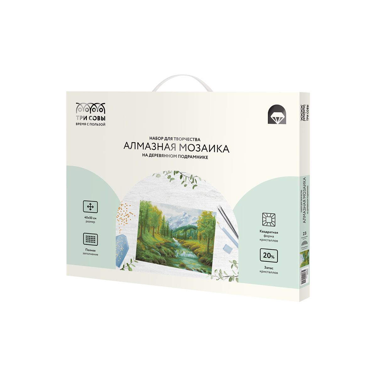 Алмазная мозаика ТРИ СОВЫ "Горная река", 40*50см, холст на деревянном подрамнике, картонная коробка с пластиковой ручкой
