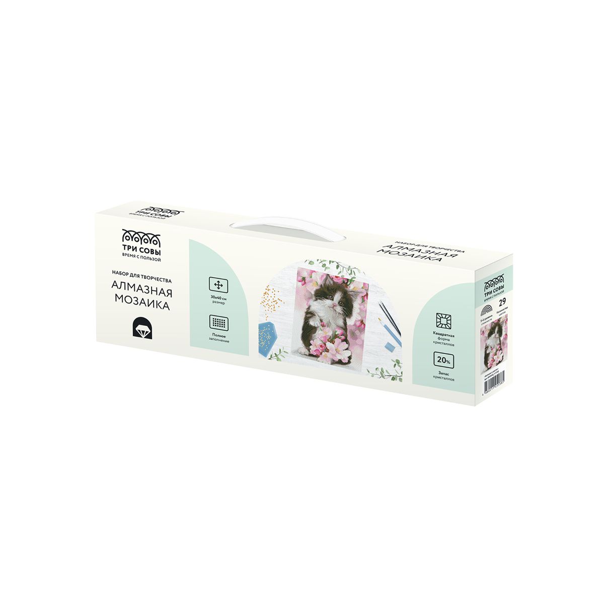 Алмазная мозаика ТРИ СОВЫ "Котенок в цветах", 30*40см, холст, картонная коробка с пластиковой ручкой