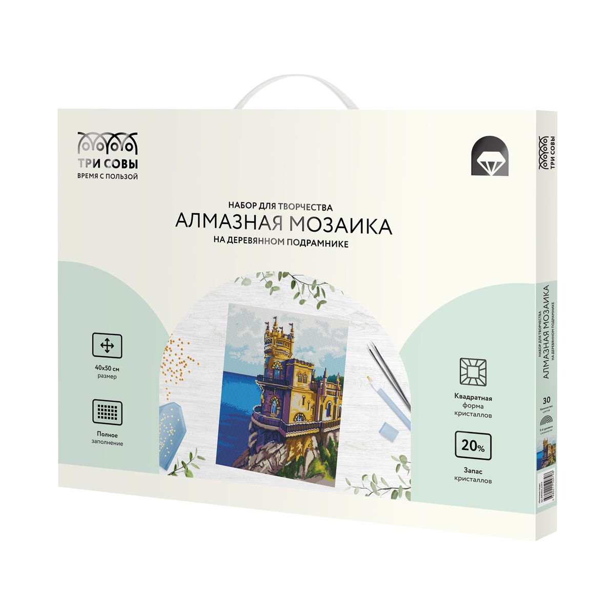 Алмазная мозаика ТРИ СОВЫ "Ласточкино гнездо", 40*50см, холст на деревянном подрамнике, картонная коробка с пластиковой ручкой