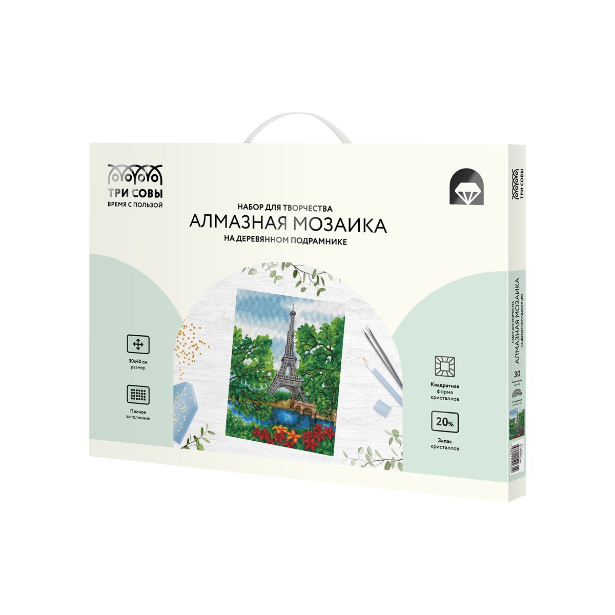Алмазная мозаика ТРИ СОВЫ "Лето в Париже", 30*40см, холст на деревянном подрамнике, картонная коробка с пластиковой ручкой