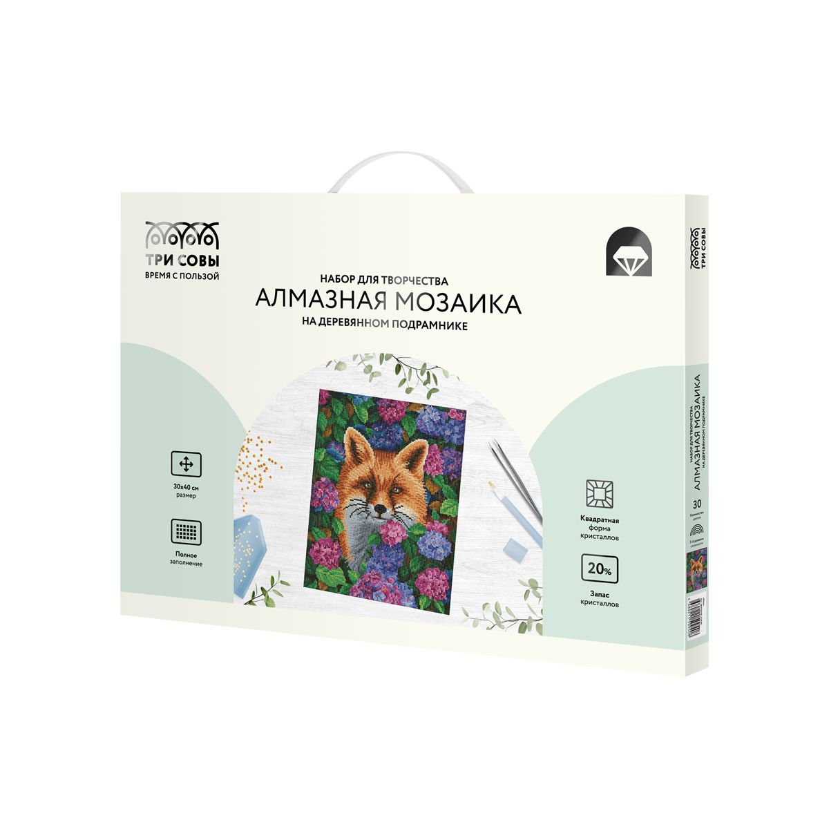 Алмазная мозаика ТРИ СОВЫ "Лиса", 30*40см, холст на деревянном подрамнике, картонная коробка с пластиковой ручкой