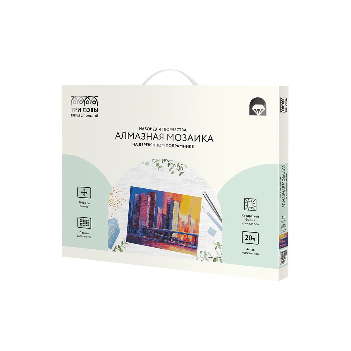 Алмазная мозаика ТРИ СОВЫ "Мегаполис", 40*50см, холст на деревянном подрамнике, картонная коробка с пластиковой ручкой