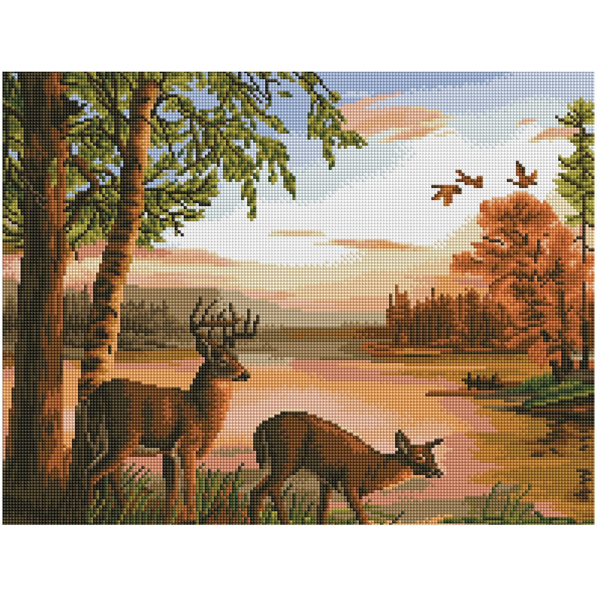 Алмазная мозаика ТРИ СОВЫ "Олени в лесу", 40*50см, холст на деревянном подрамнике, картонная коробка с пластиковой ручкой