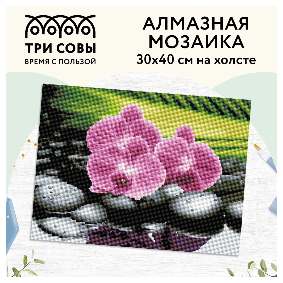 Алмазная мозаика ТРИ СОВЫ "Орхидеи на камнях", 30*40см, холст, картонная коробка с пластиковой ручкой