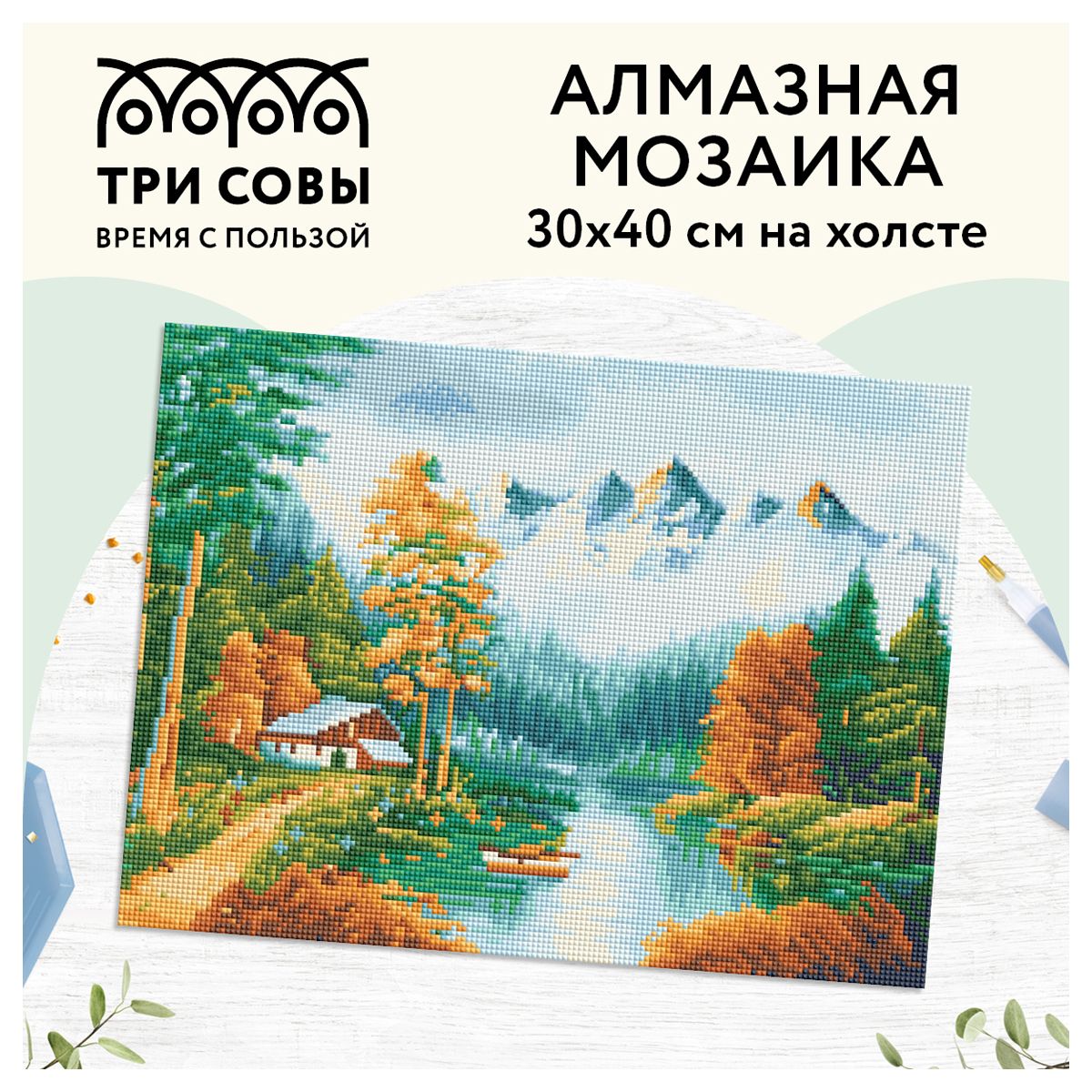Алмазная мозаика ТРИ СОВЫ "Осень в горах", 30*40см, холст, картонная коробка с пластиковой ручкой