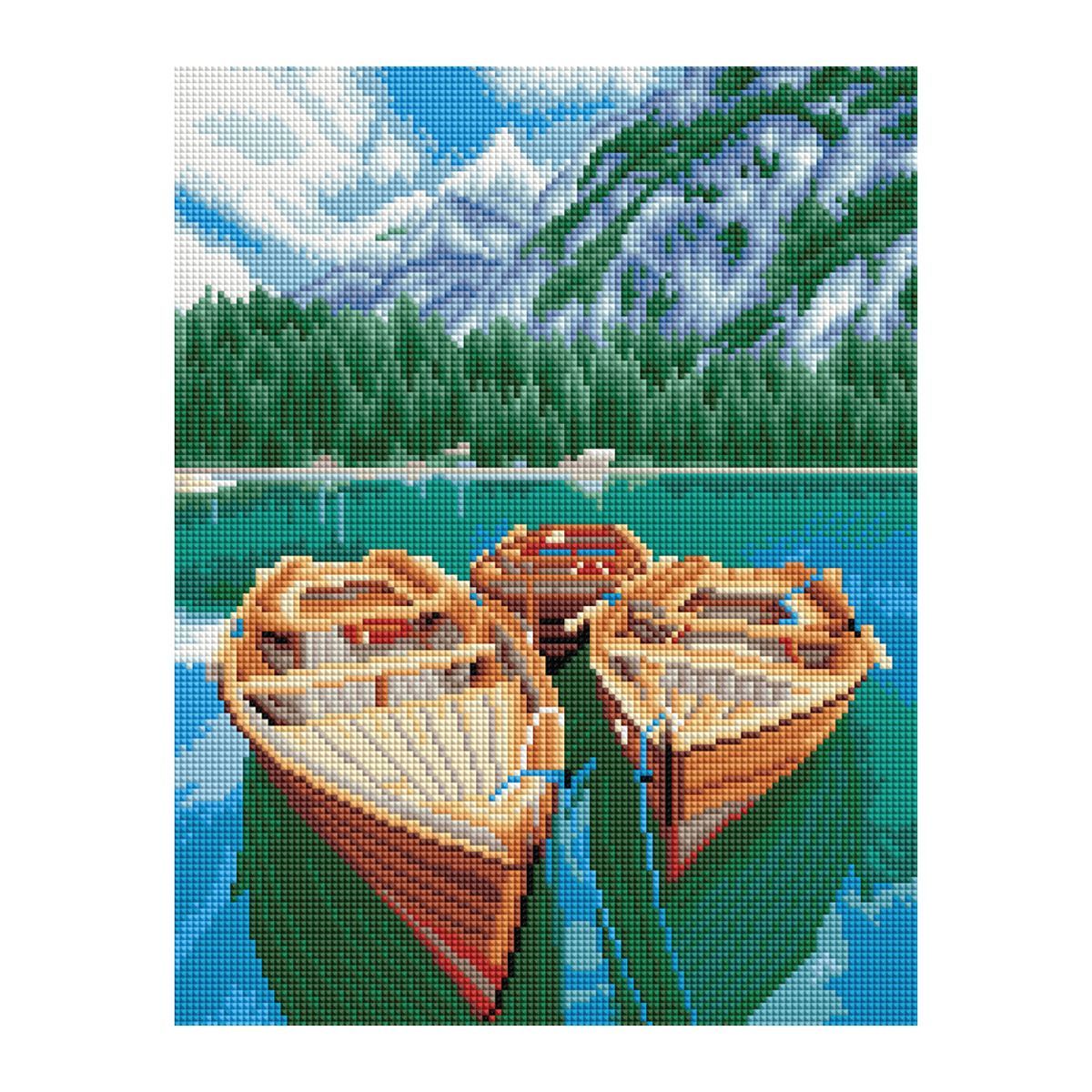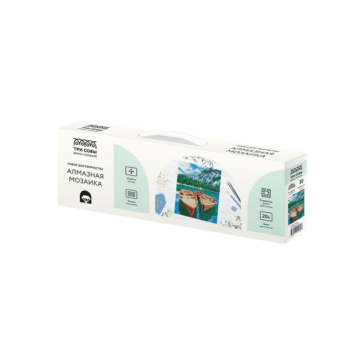 Алмазная мозаика ТРИ СОВЫ "Озеро в Альпах", 30*40см, холст, картонная коробка с пластиковой ручкой