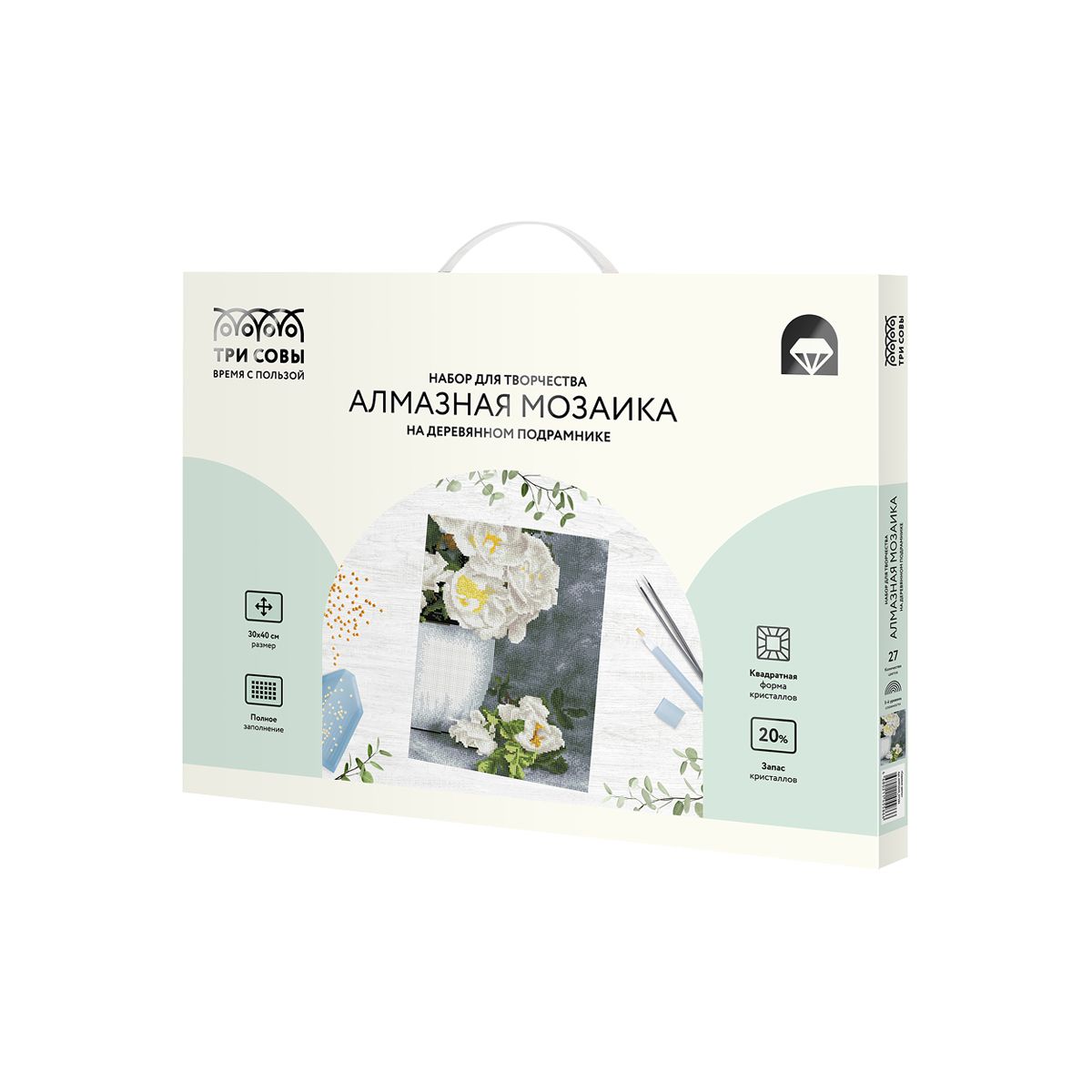 Алмазная мозаика ТРИ СОВЫ "Садовые цветы", 30*40см, холст на деревянном подрамнике, картонная коробка с пластиковой ручкой