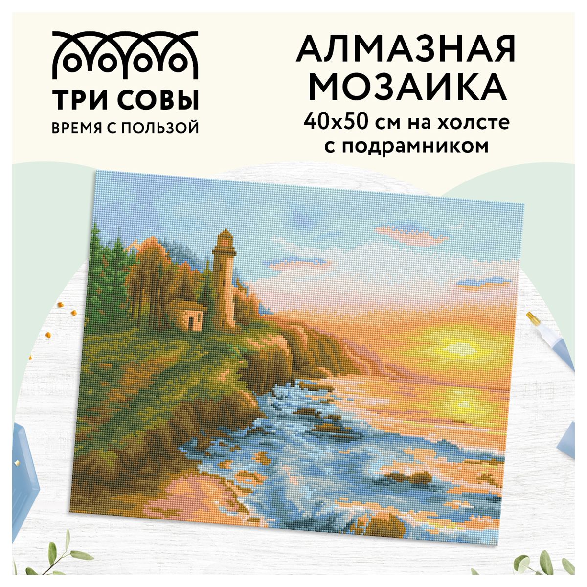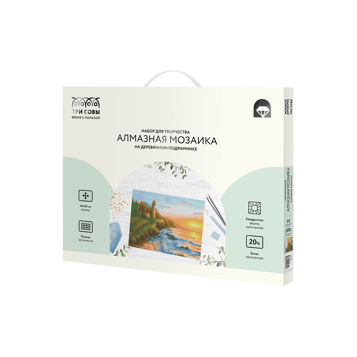 Алмазная мозаика ТРИ СОВЫ "Старый маяк", 40*50см, холст на деревянном подрамнике, картонная коробка с пластиковой ручкой