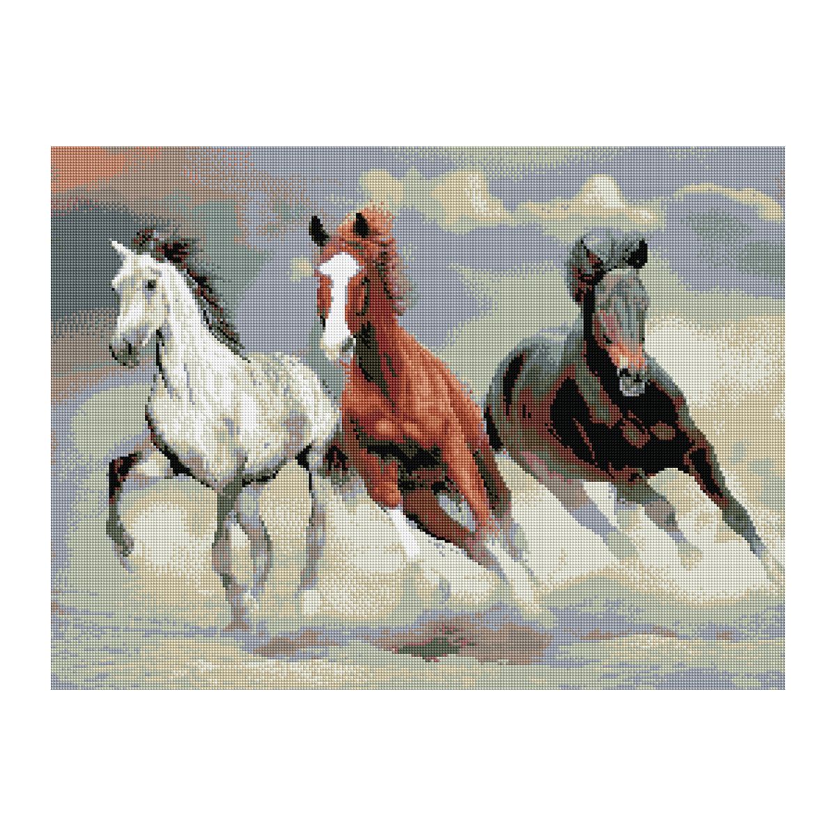 Алмазная мозаика ТРИ СОВЫ "Тройка лошадей", 50*70см, холст, картонная коробка с пластиковой ручкой