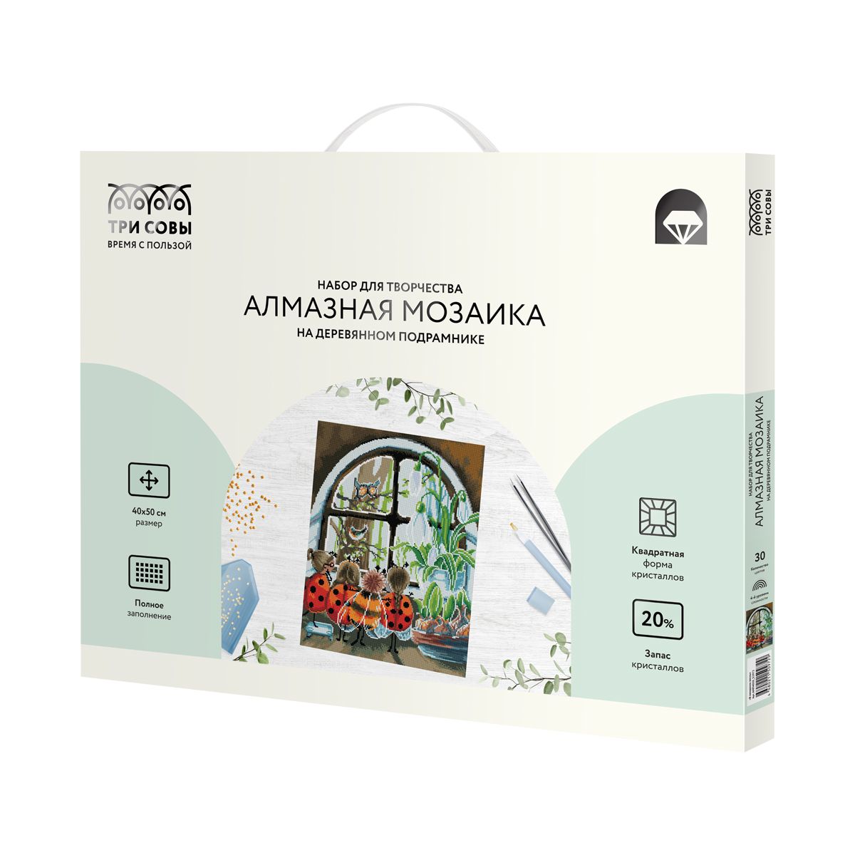 Алмазная мозаика ТРИ СОВЫ "В ожидании весны", 40*50см, холст на деревянном подрамнике, картонная коробка с пластиковой ручкой
