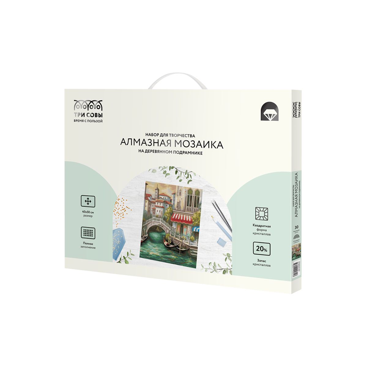 Алмазная мозаика ТРИ СОВЫ "Венецианский канал", 40*50см, холст на деревянном подрамнике, картонная коробка с пластиковой ручкой