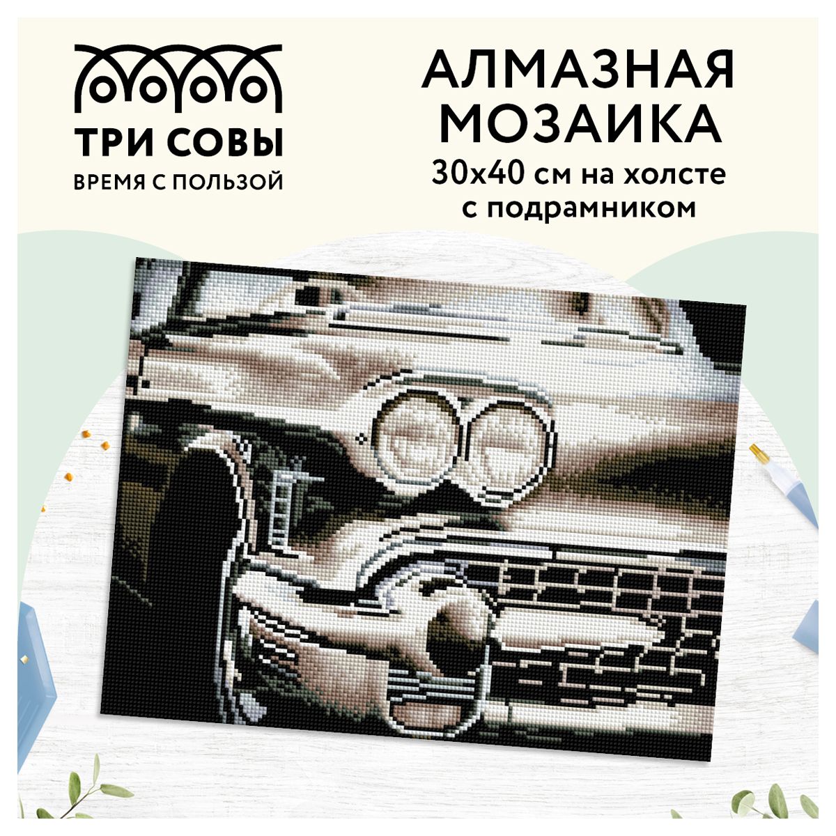 Алмазная мозаика ТРИ СОВЫ "Винтажный автомобиль", 30*40см, холст на деревянном подрамнике, картонная коробка с пластиковой ручкой