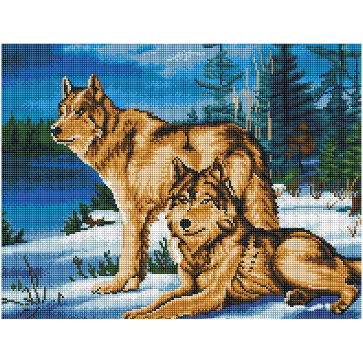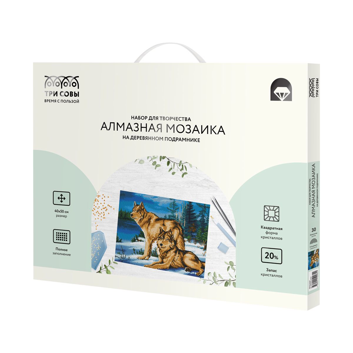 Алмазная мозаика ТРИ СОВЫ "Волчья семья", 40*50см, холст на деревянном подрамнике, картонная коробка с пластиковой ручкой