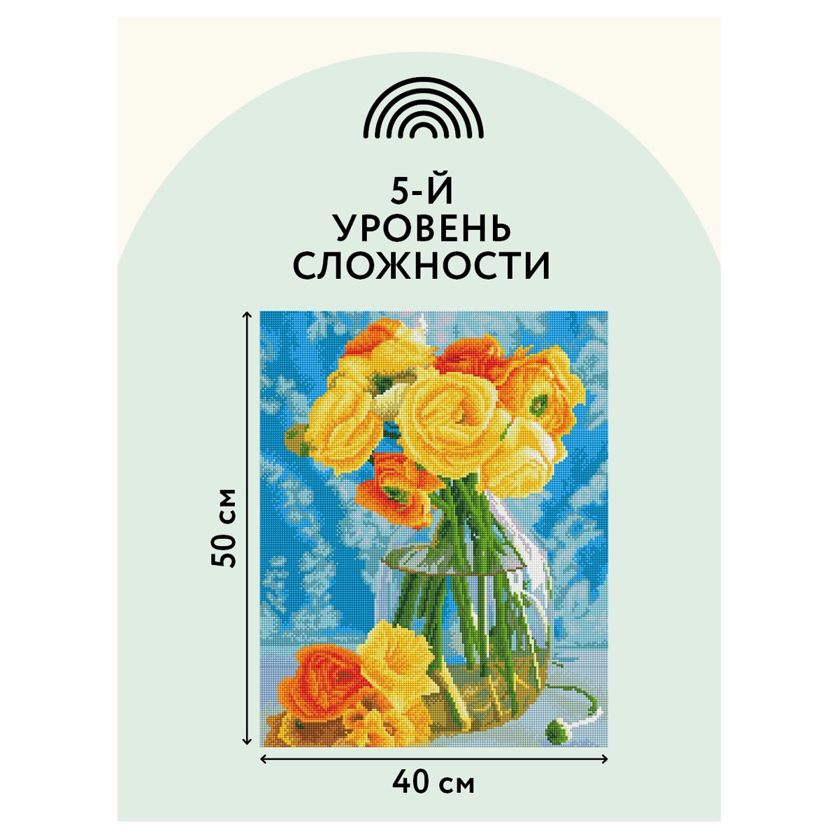 • холст 40*50 см на деревянном подрамнике с цветной схемой картины, покрытый клеевым слоем и защищенный специальной пленкой;