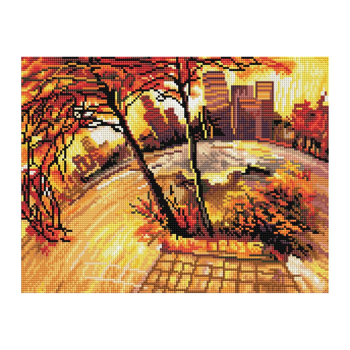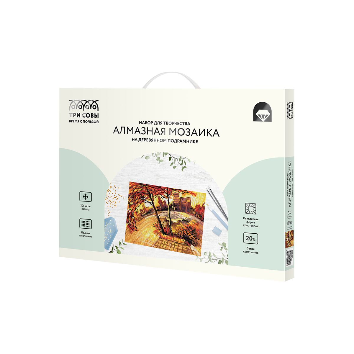 Алмазная мозаика ТРИ СОВЫ "Золотая осень", 30*40см, холст на деревянном подрамнике, картонная коробка с пластиковой ручкой