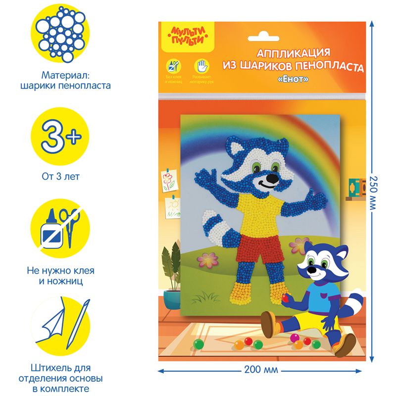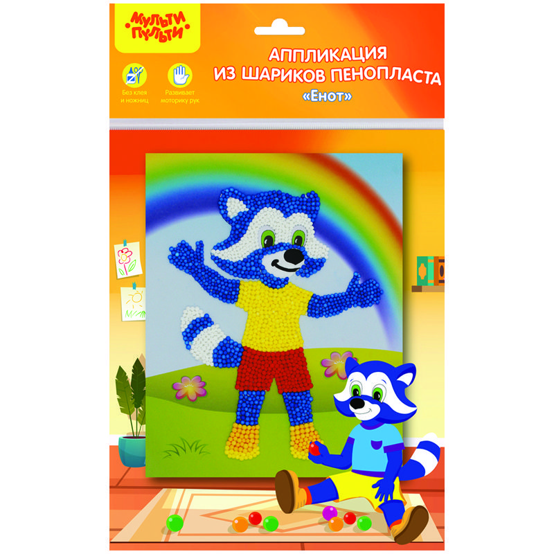 Аппликация из цветных шариков пенопласта Мульти-Пульти "Енот"
