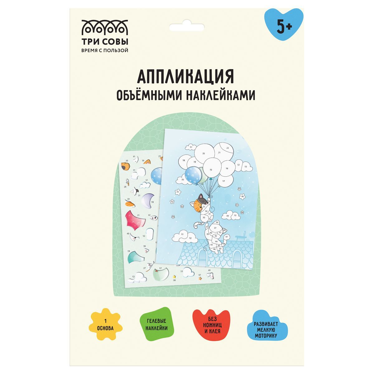 Аппликация наклейками ТРИ СОВЫ "Котики", А4, 1 основа, объемные наклейки, картонный конверт