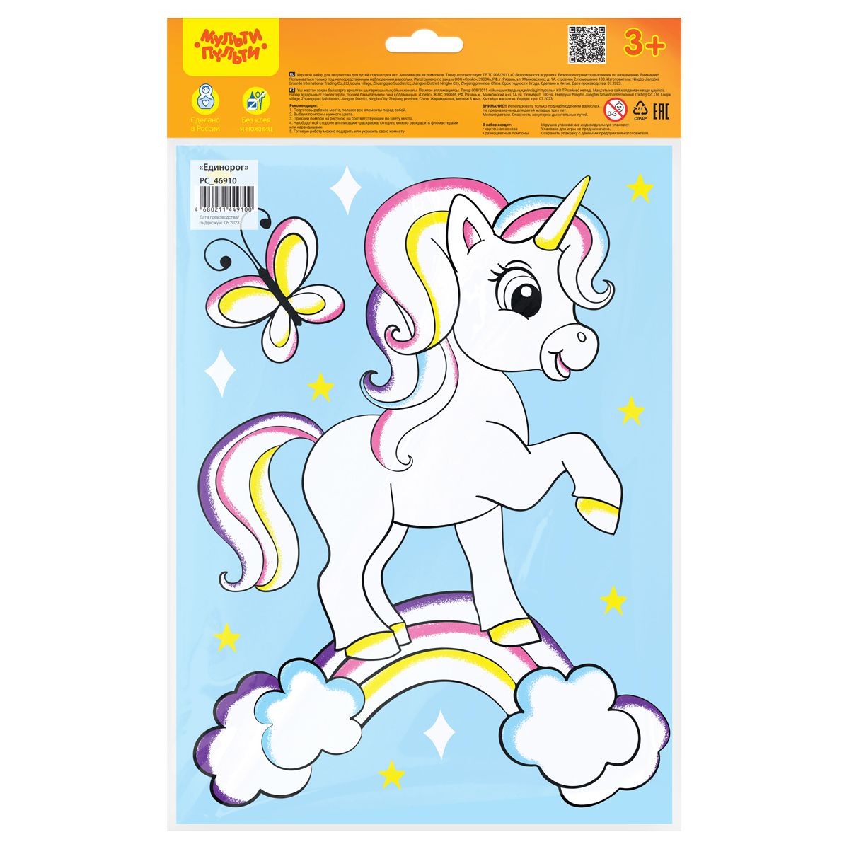 Аппликация помпонами Мульти-Пульти "Единорог", 20*28см, с раскраской, европодвес