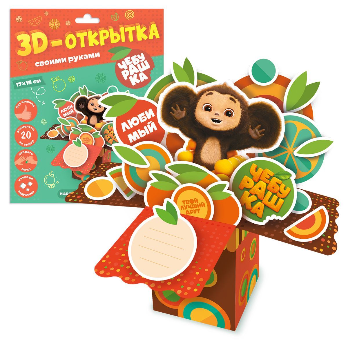 Набор для творчества ГЕОДОМ "3D-открытка своими руками.Чебурашка"