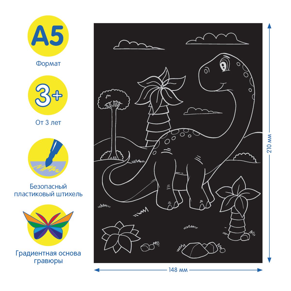 Гравюра Мульти-Пульти "Динозавры", А5, градиентная основа, пакет с европодвесом