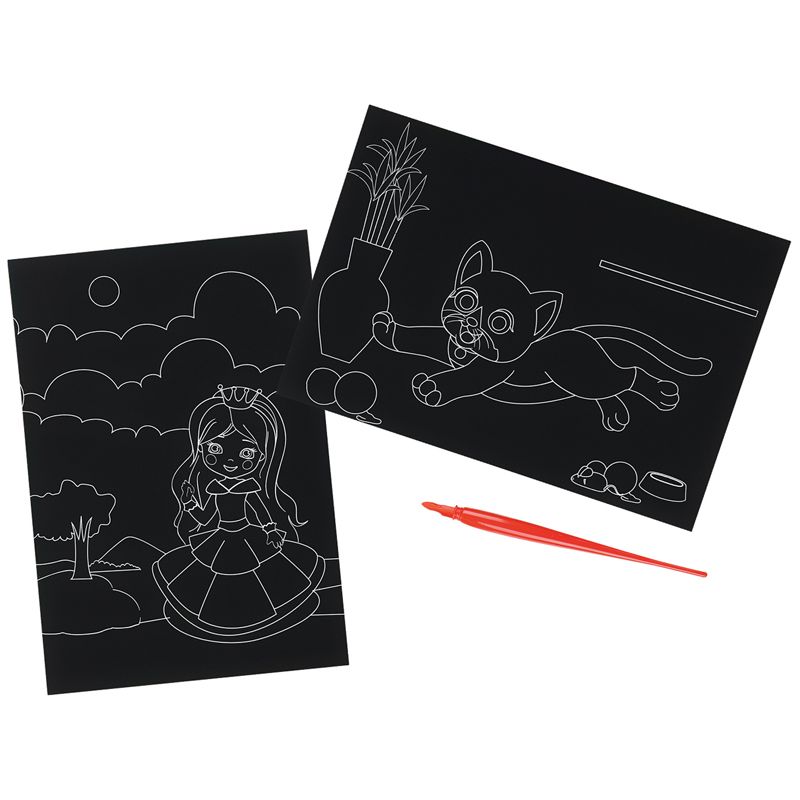 Набор идеально подходит для первого опыта гравирования. Если с нажимом провести штихелем по листу картона, то черный слой легко снимется и под ним проступит яркий рисунок. Штриховать картинку можно, как обозначая отдельные детали и героев рисунка, так и всю целиком. Кроме того, комплект упакован в картонный конверт с европодвесом.